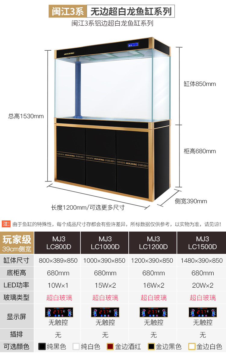 闽江中大型鱼缸水族箱超白玻璃龙鱼缸客厅家用底过滤生态造景鱼缸