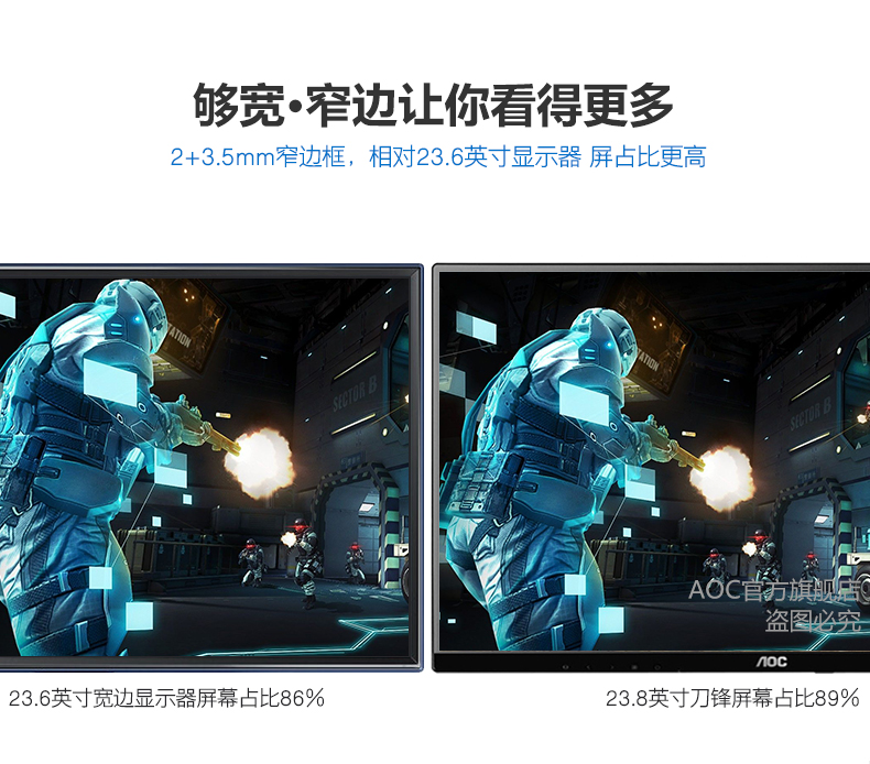 AOC液晶显示器23英寸ips超薄窄边框护眼高清电脑显示屏I2379