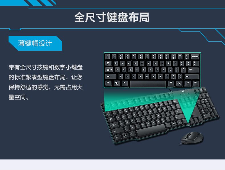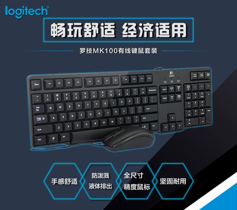 罗技MK100有线键鼠套装圆孔接口键鼠套装有线办公家用键盘鼠标