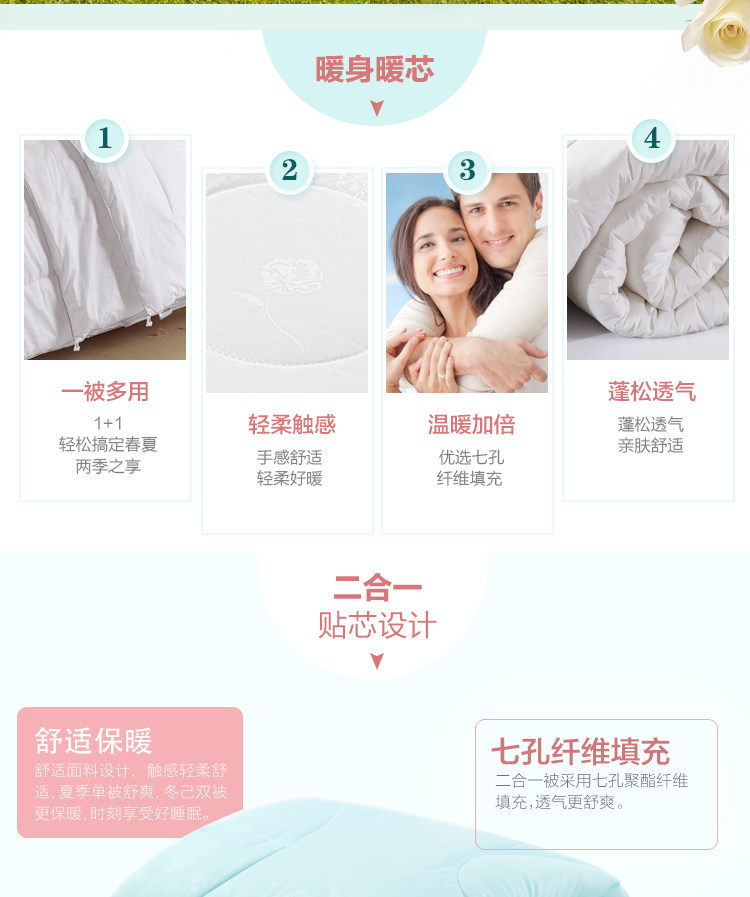 水星家纺蚕丝被冬被加厚子母被双人蚕丝被芯被子二合一被国色天香