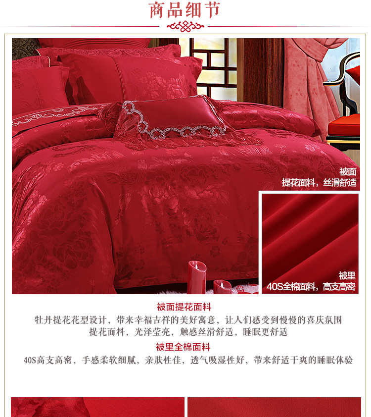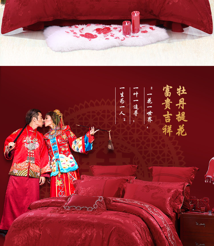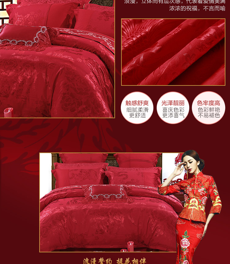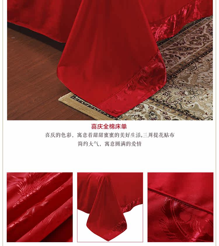 水星家纺婚庆四件套大红床单被套粉色婚庆床上用品喜庆百合热恋