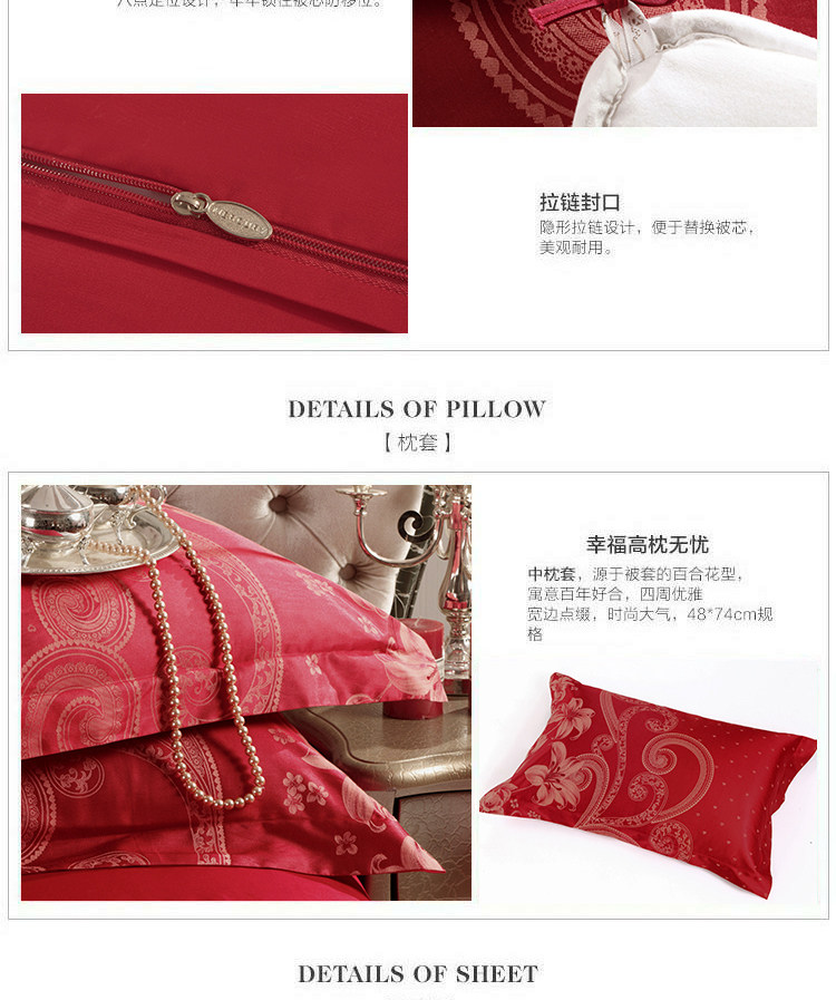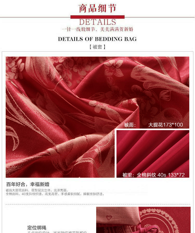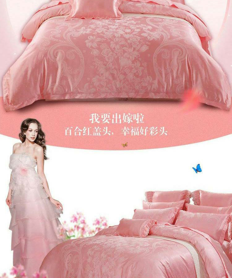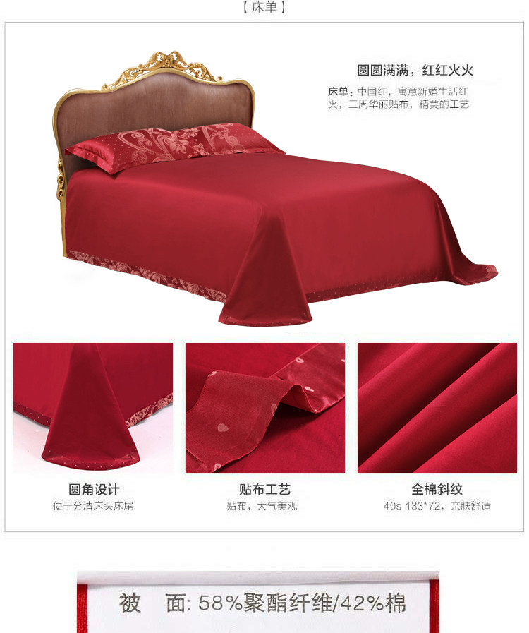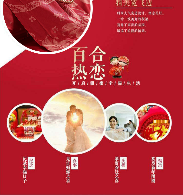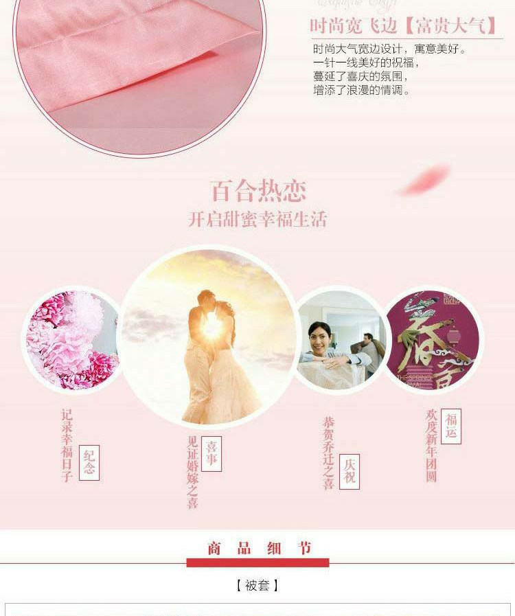 水星家纺婚庆四件套大红床单被套粉色婚庆床上用品喜庆百合热恋