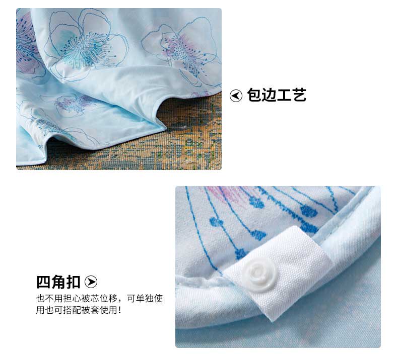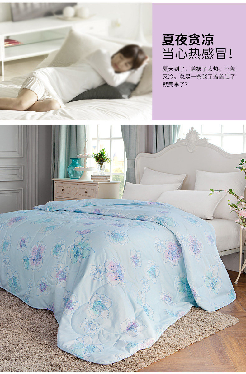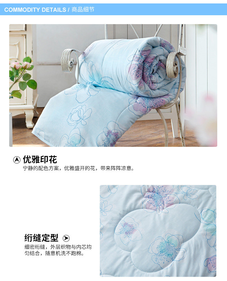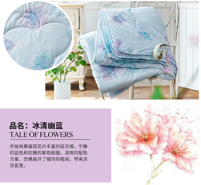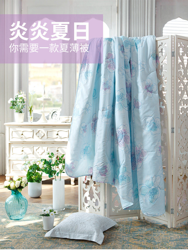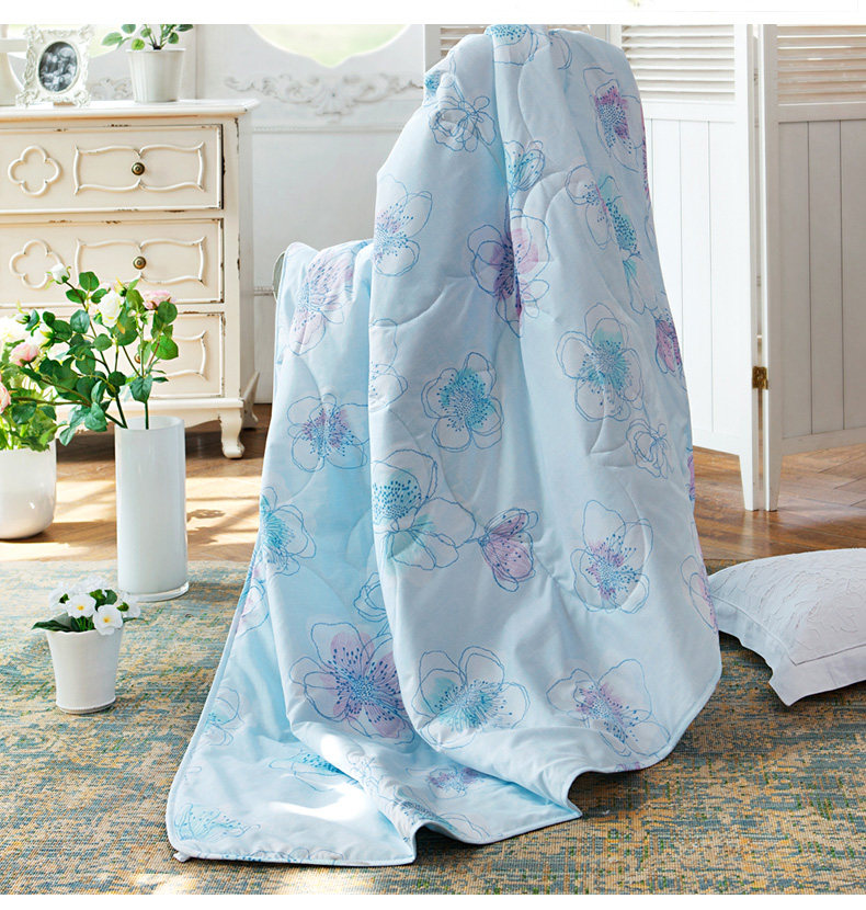 多喜爱家纺空调被可水洗花卉图案夏凉被舒适夏被冰清幽蓝夏薄被