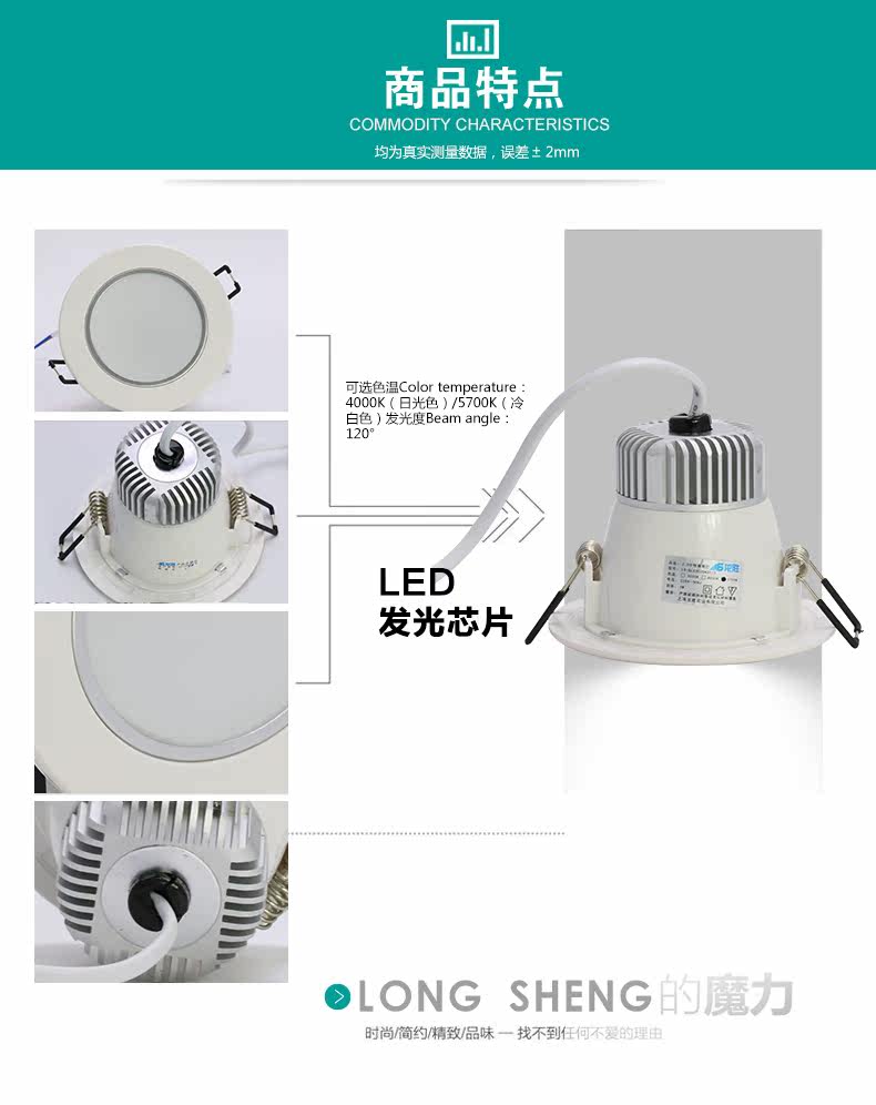 龙胜LED超薄筒灯3W5W全2.5寸3寸开孔尺寸7公分8公分天花灯包邮