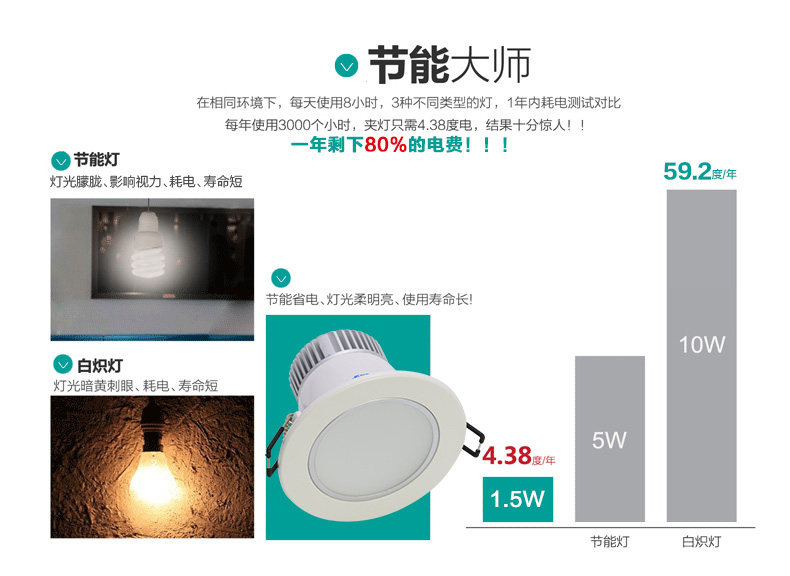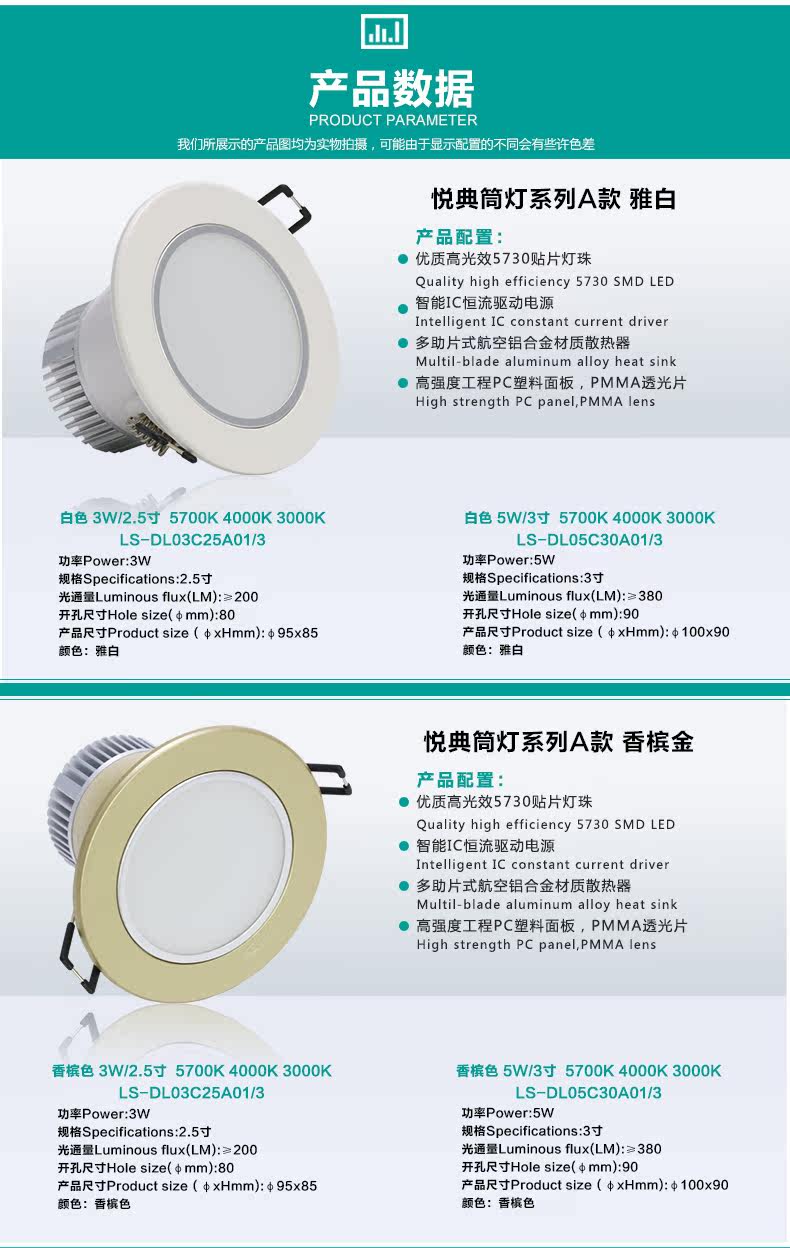 龙胜旗舰店悦典A款LED筒灯3W(2.5寸)5W(3寸)天花灯客厅灯