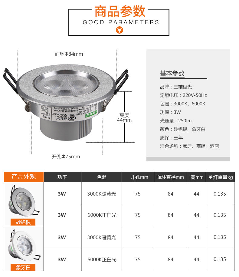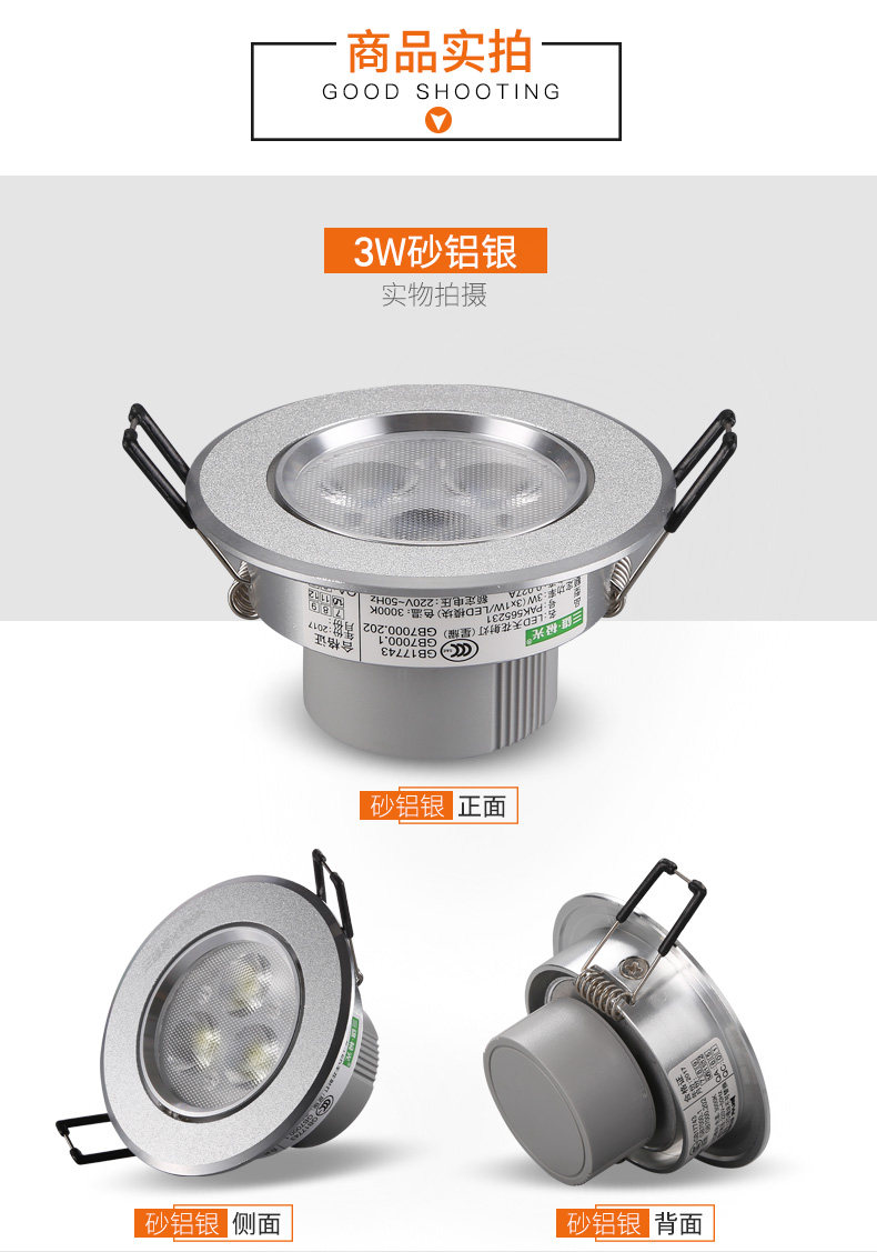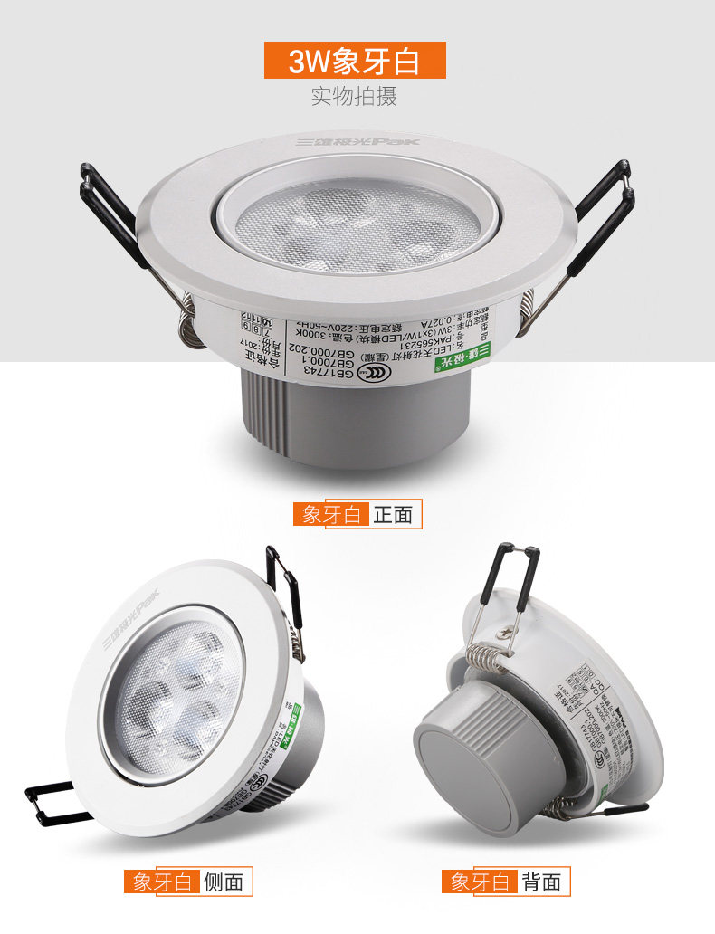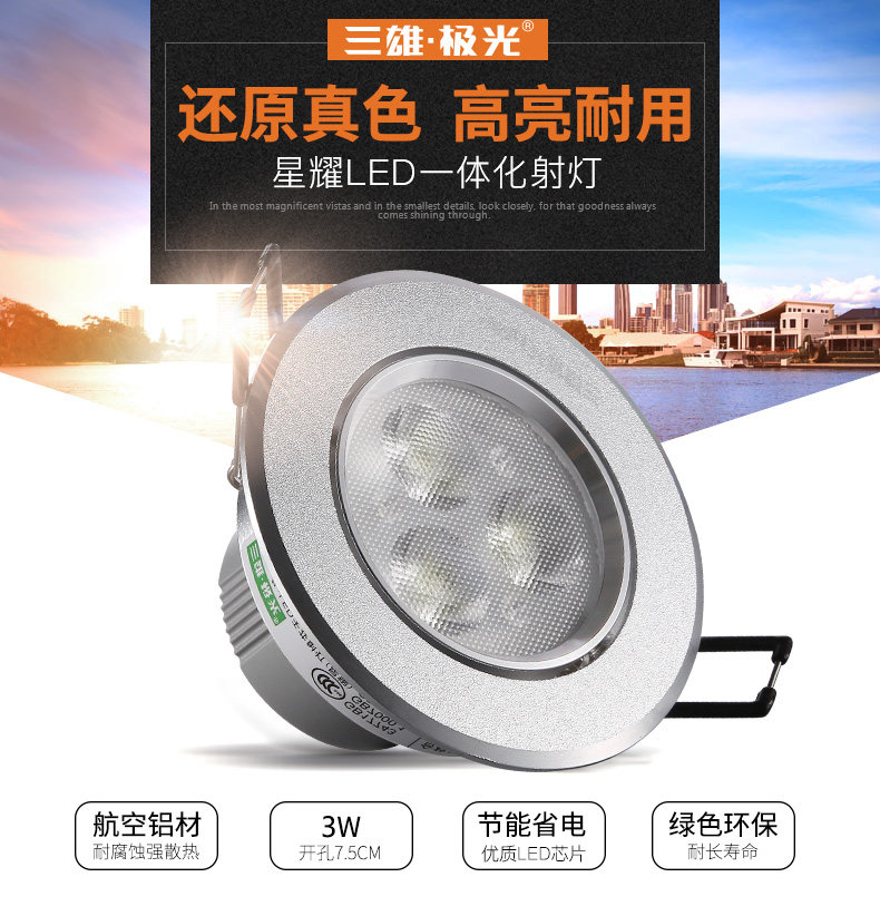 三雄极光 LED射灯3w客厅吊顶背景墙天花射灯牛眼灯服装店猫眼孔灯
