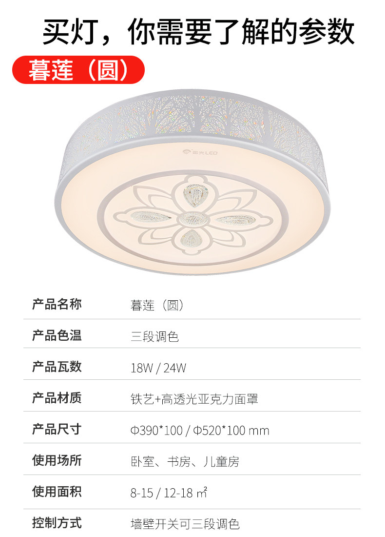 阳光照明led卧室灯具套餐简约现代圆形客厅灯餐厅书房调色吸顶灯