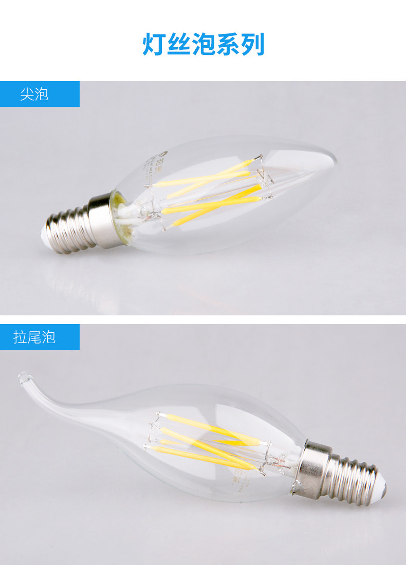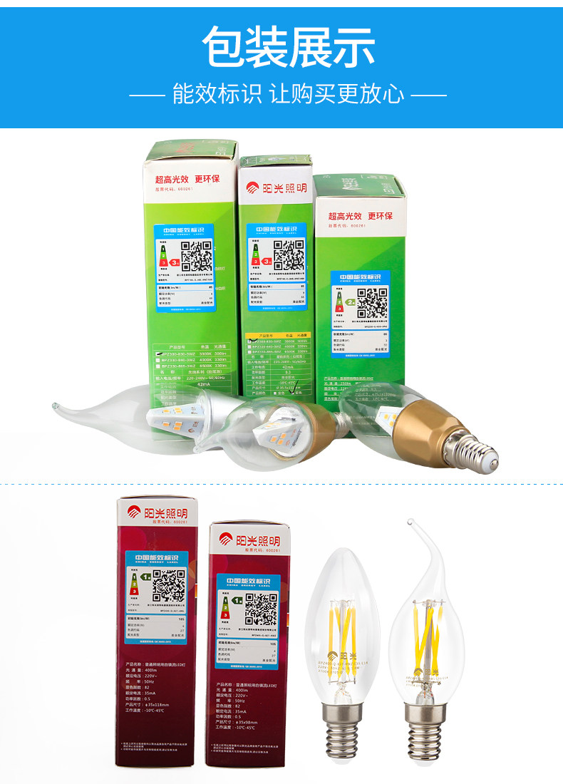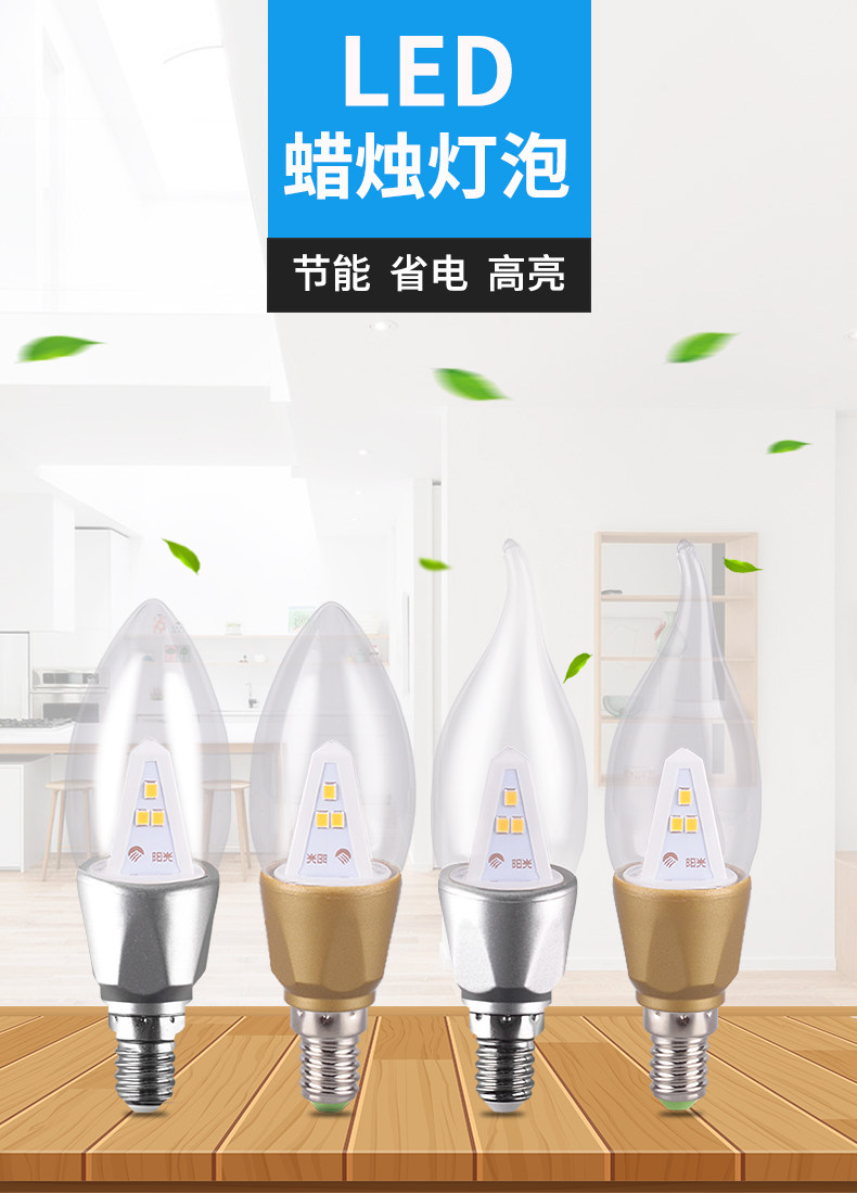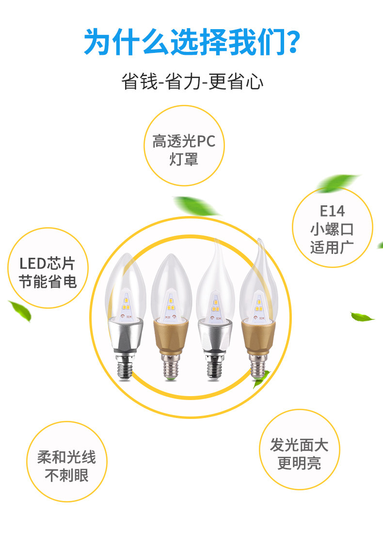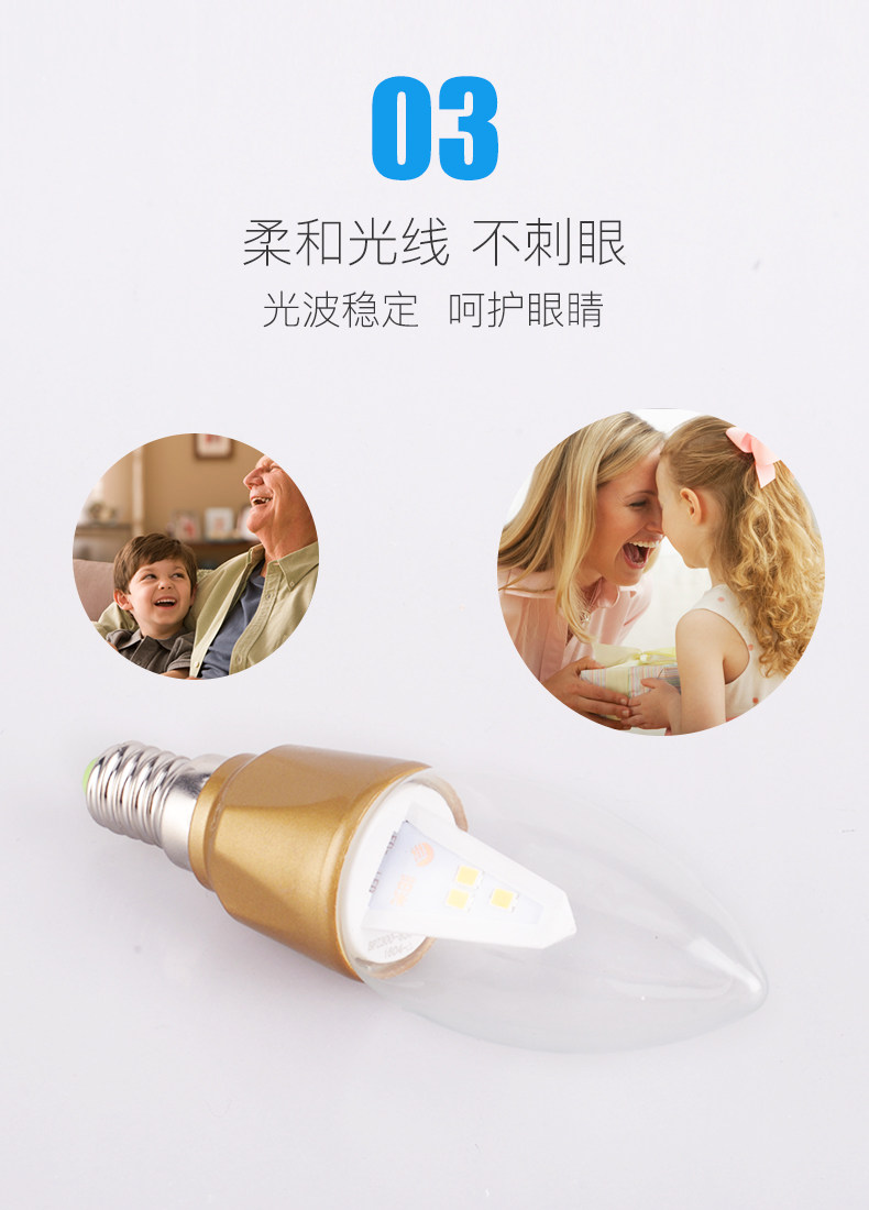 阳光LED尖泡拉尾蜡烛灯泡E14螺口3W吊灯暖白黄照明超亮节能光源