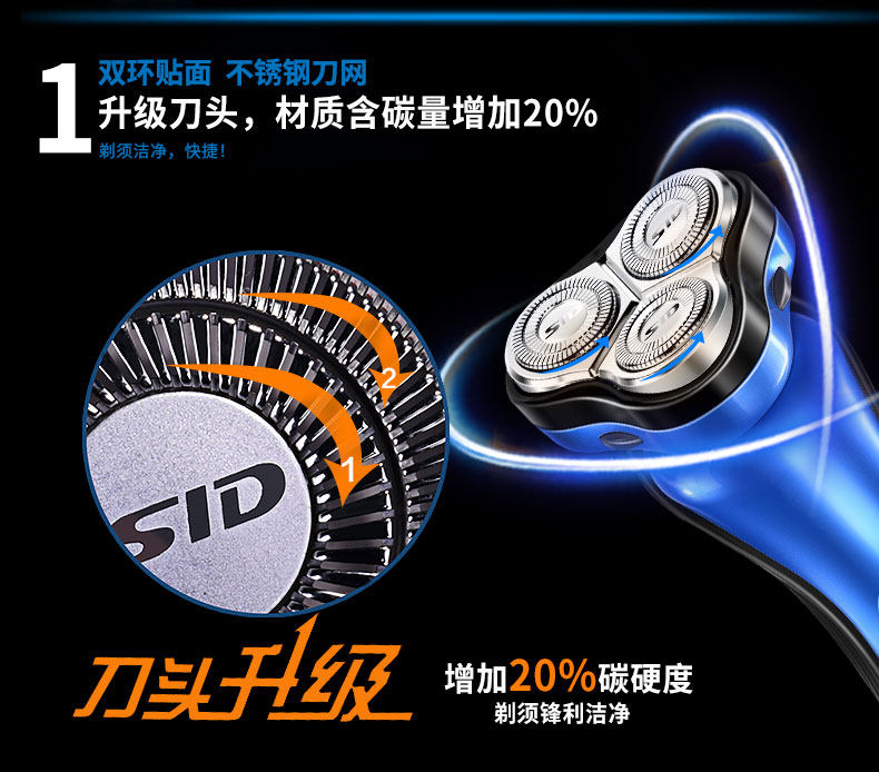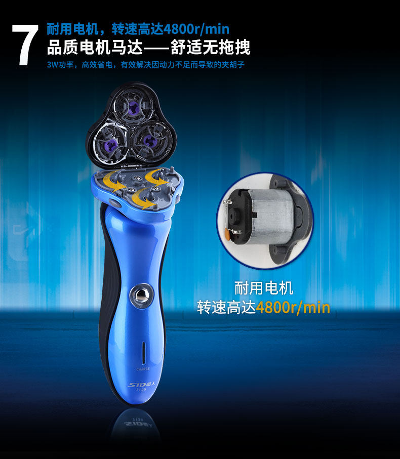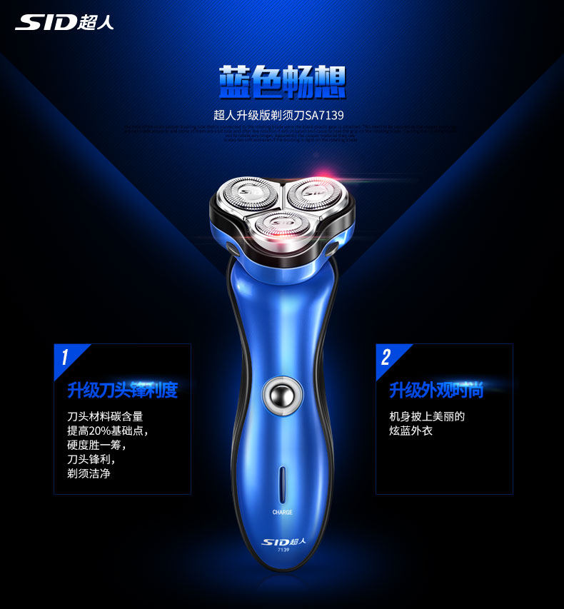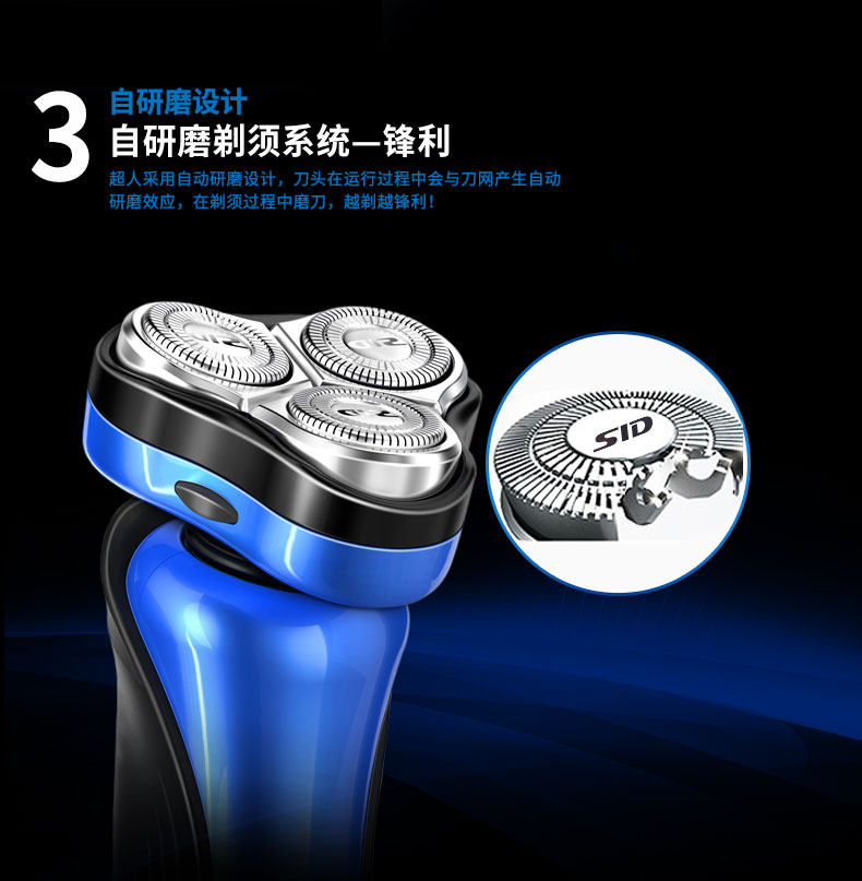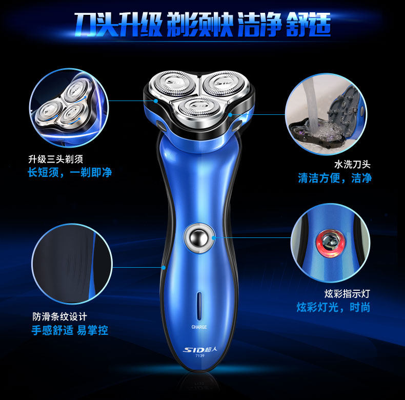 SA7139超人三头旋转式电动剃须刀超人充电式刮胡刀刀头水洗须刨