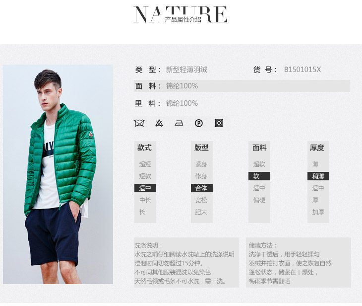 以下是波司登春秋季轻薄蓄热羽绒服男简约短款时尚立领冬外套B1501015X的详细说明,厂家介绍,求购联系信息,最终解释权归波司登国际控股有限公司所有