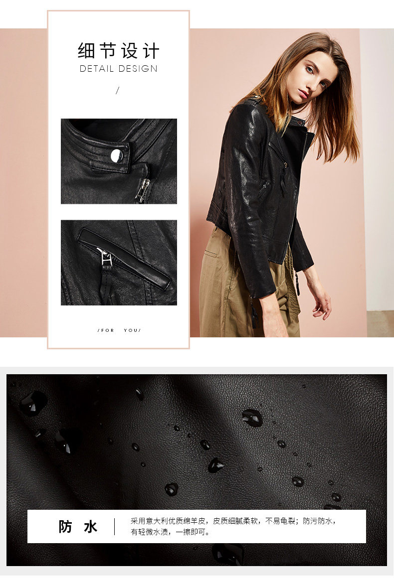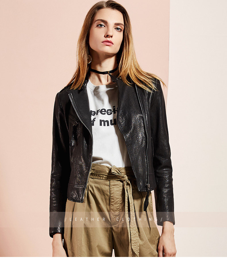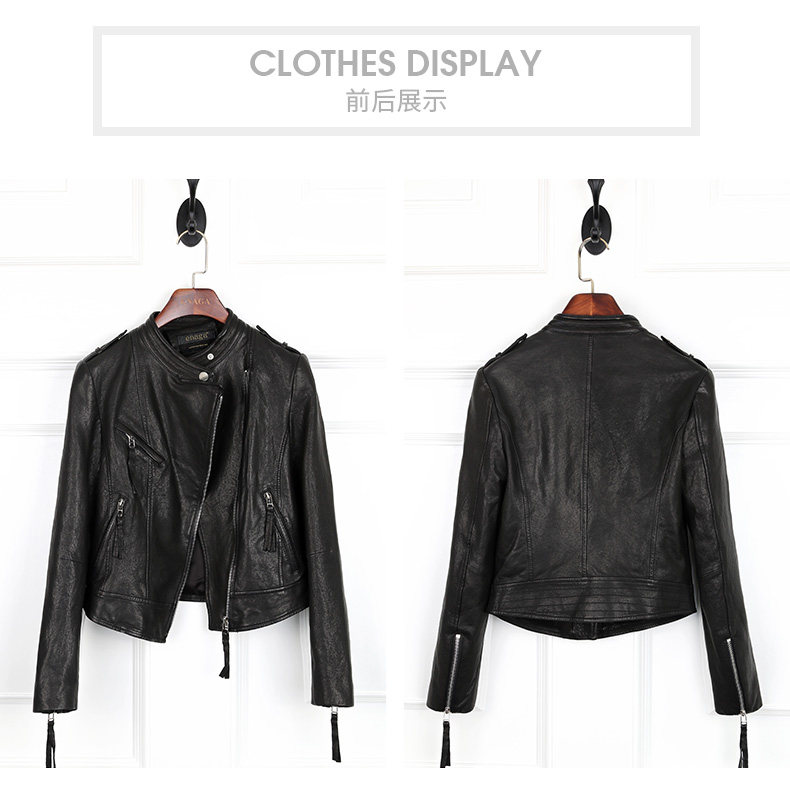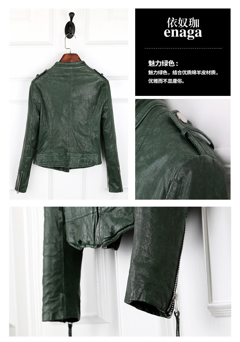 依奴珈真皮皮衣女短款2017新款春秋绵羊皮机车服女皮夹克外套