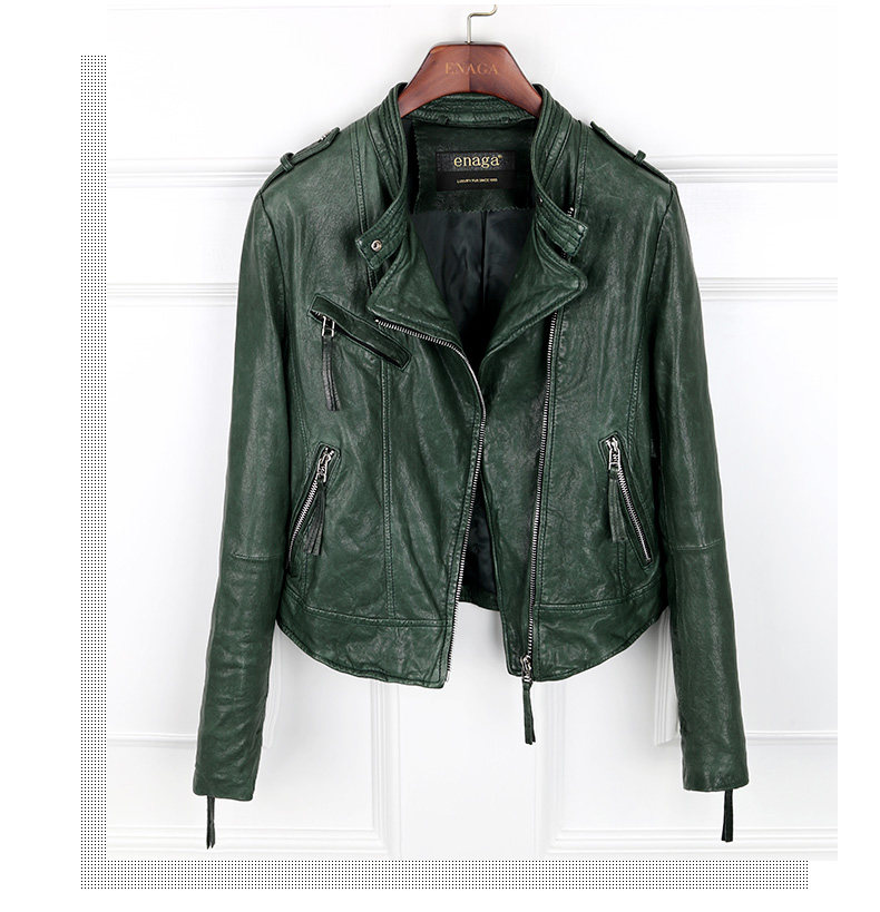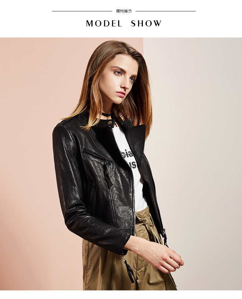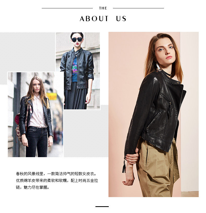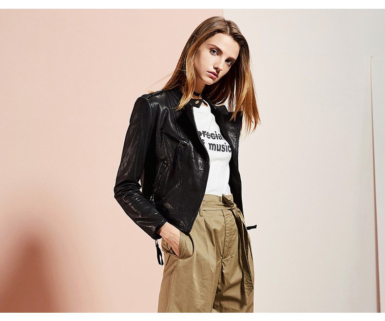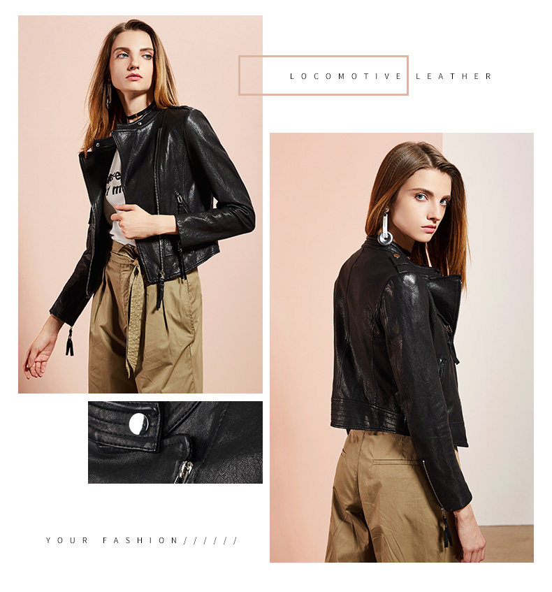 依奴珈真皮皮衣女短款2017新款春秋绵羊皮机车服女皮夹克外套