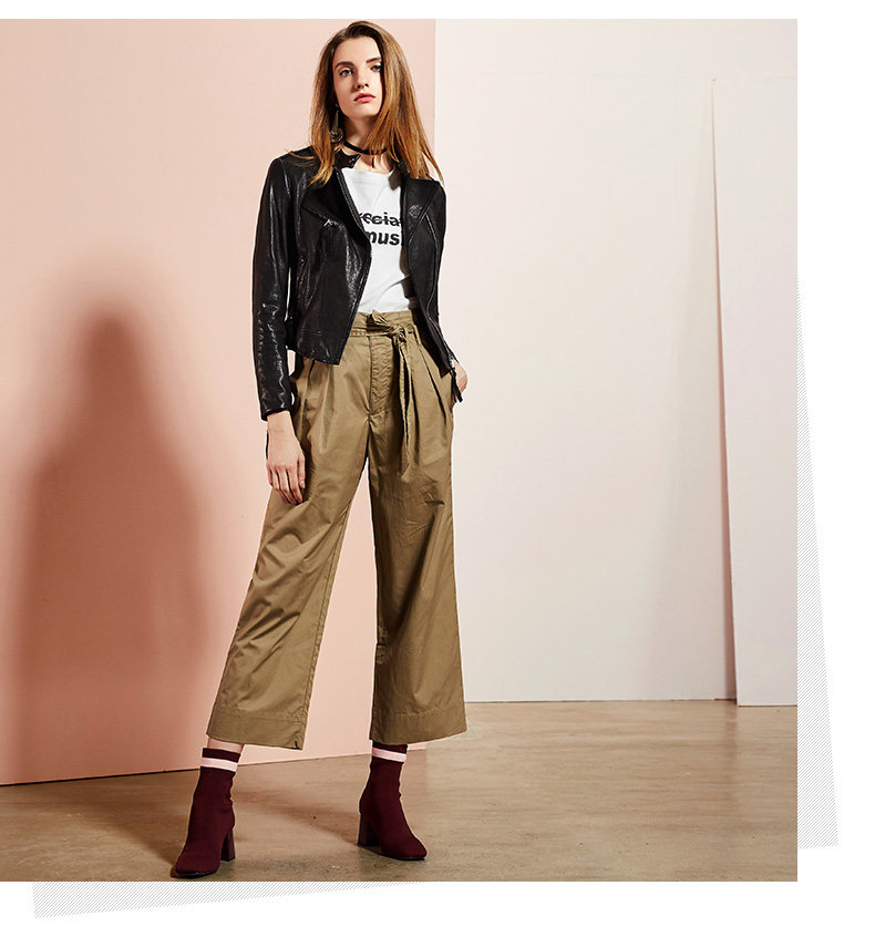 依奴珈真皮皮裤女短款新款秋冬百搭修身外穿羊皮休闲裤阔腿裤