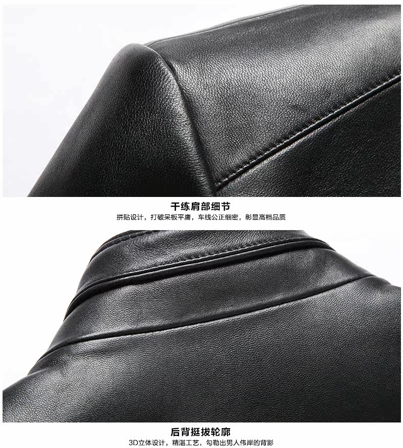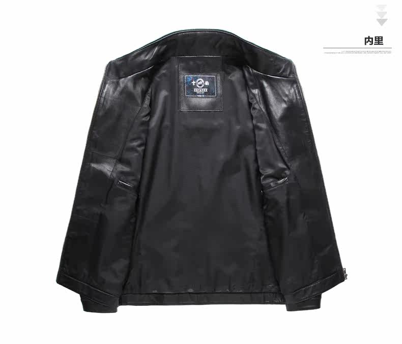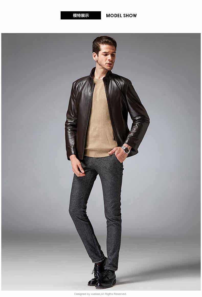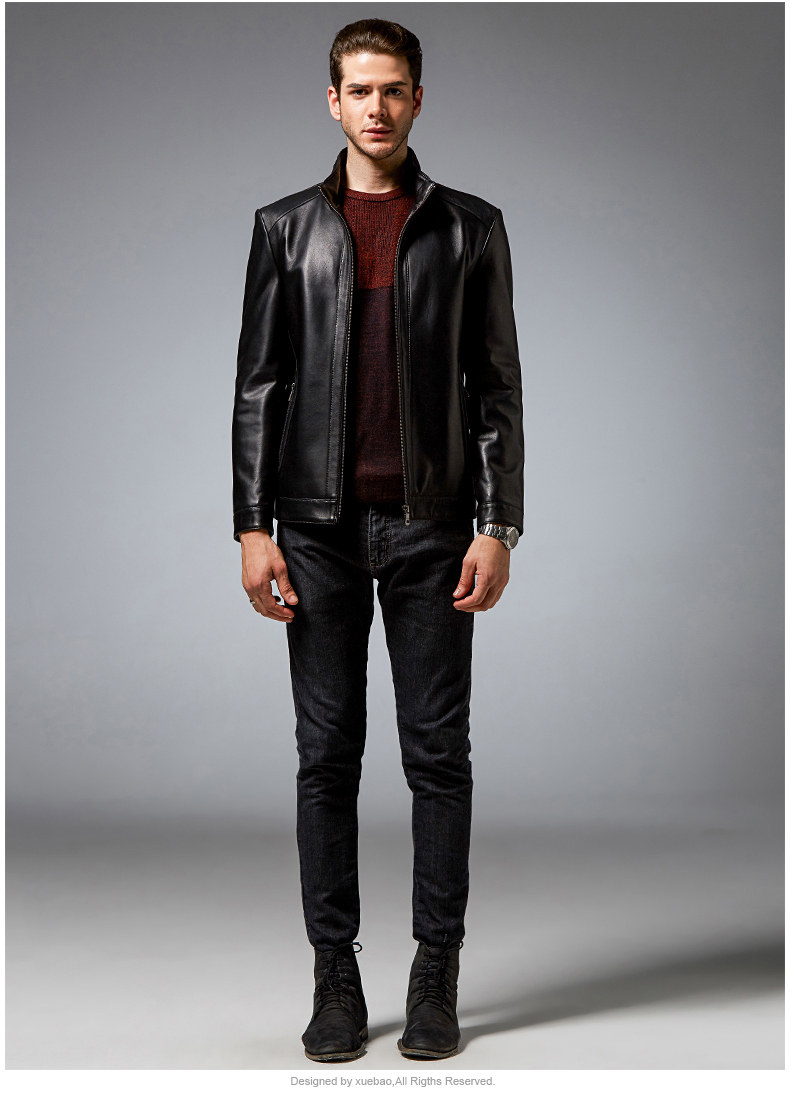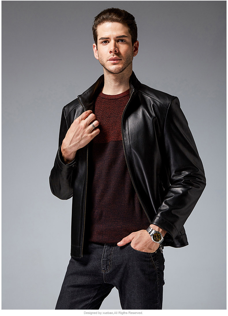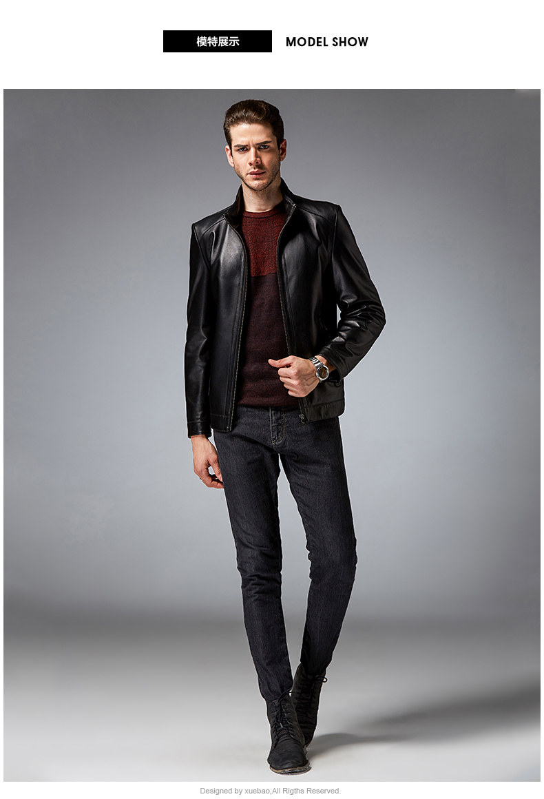 雪豹真皮西装男 绵羊皮修身男士外套 单皮皮衣 立领黑色6033