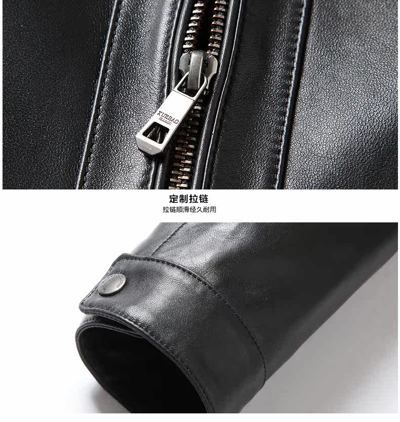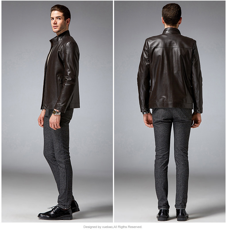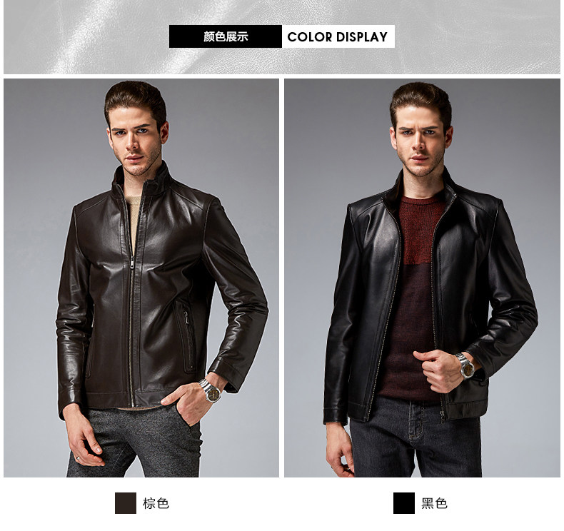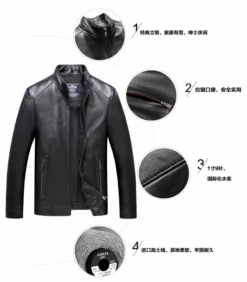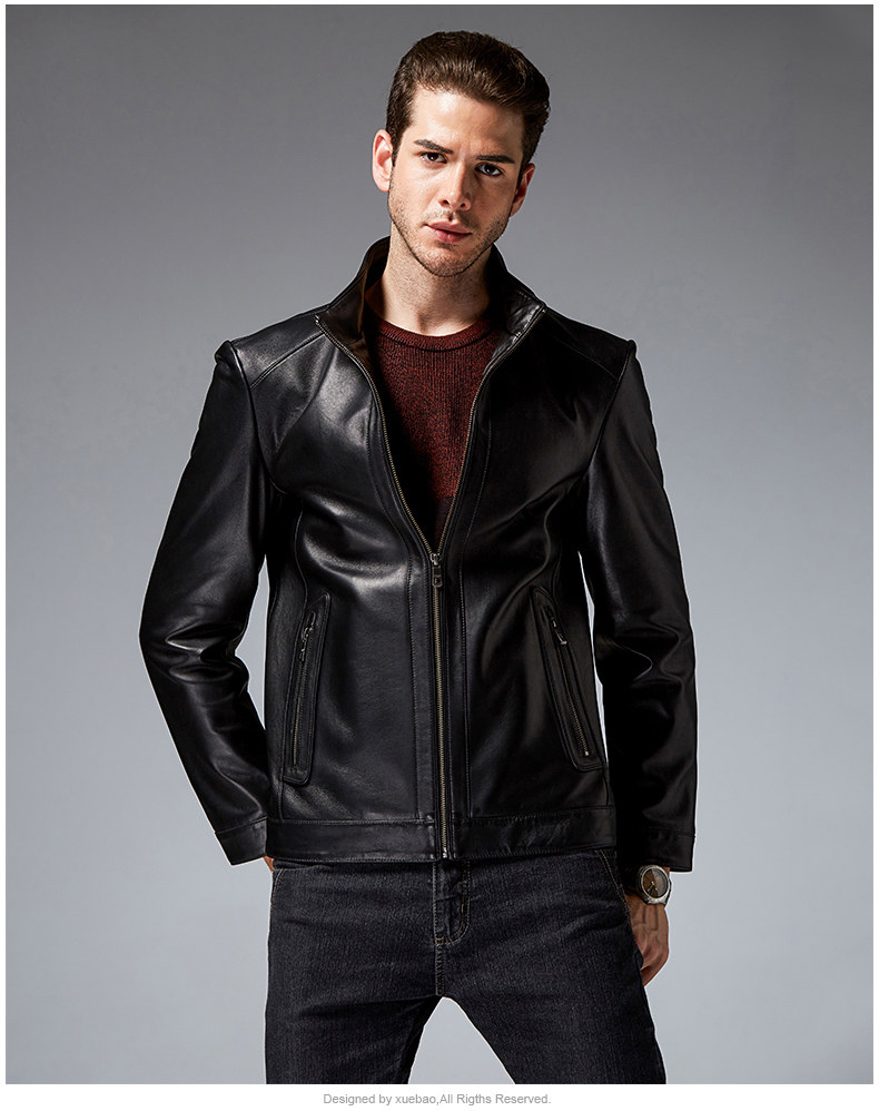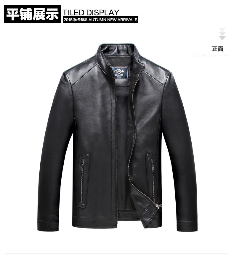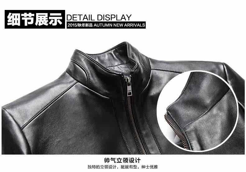 雪豹真皮西装男 绵羊皮修身男士外套 单皮皮衣 立领黑色6033