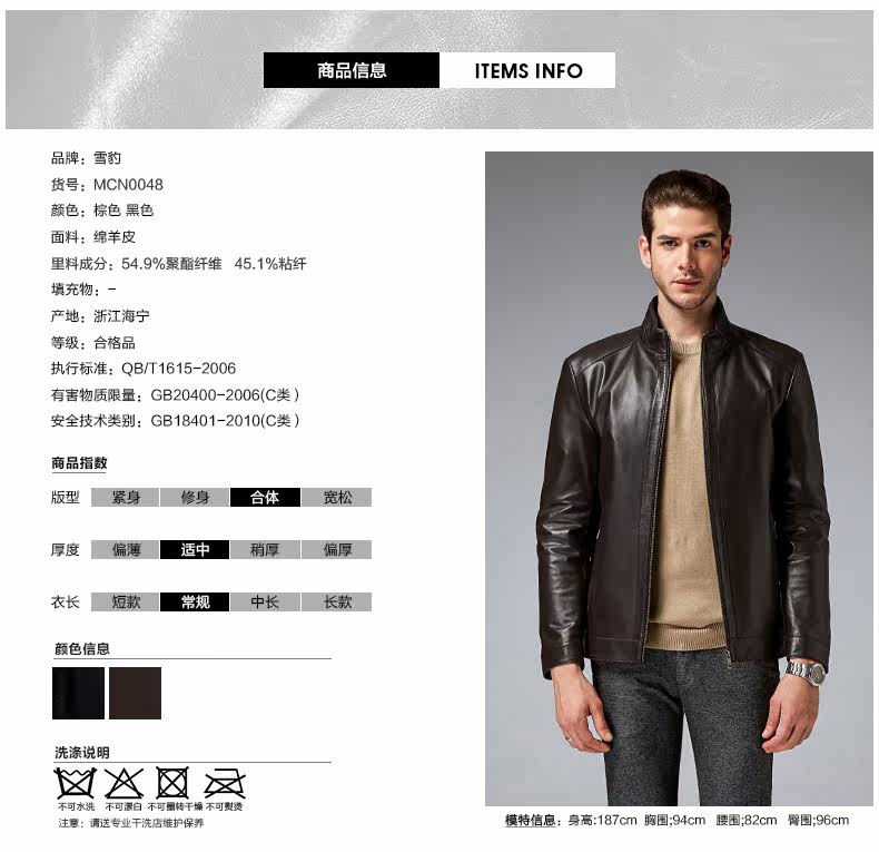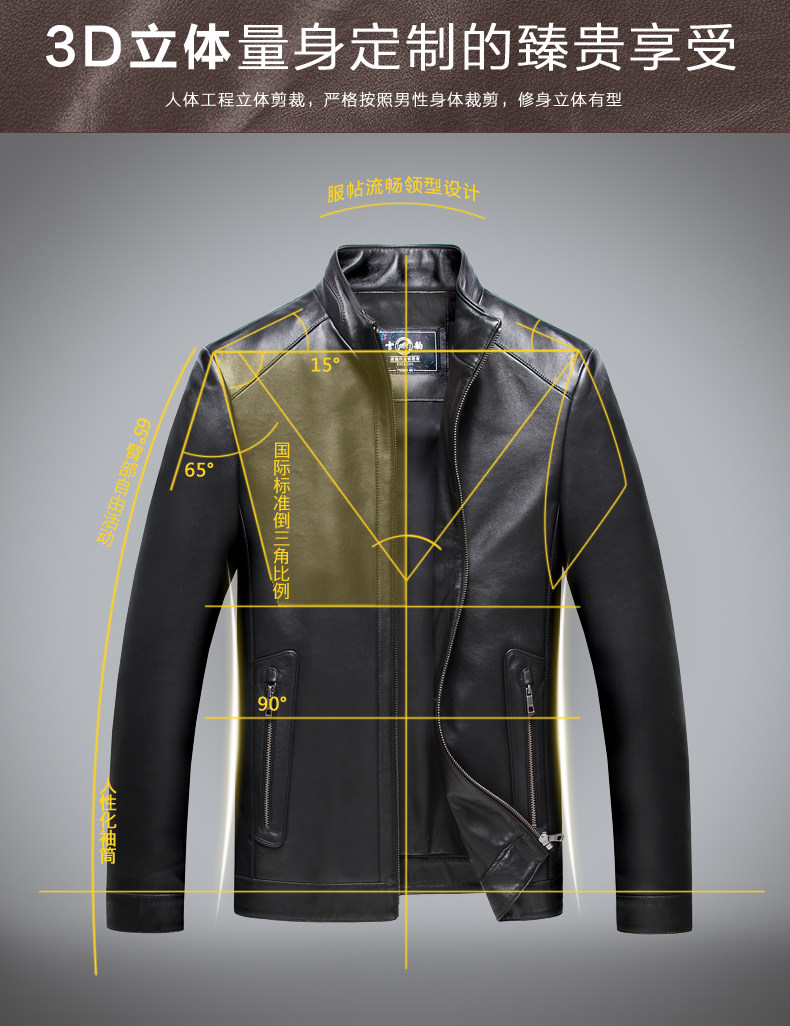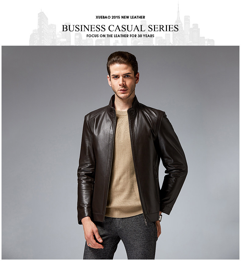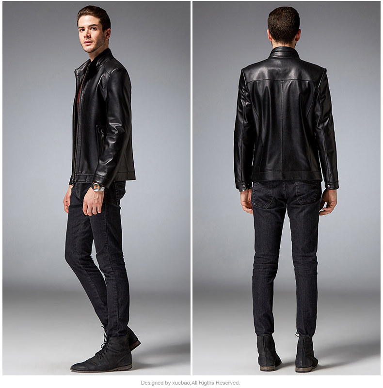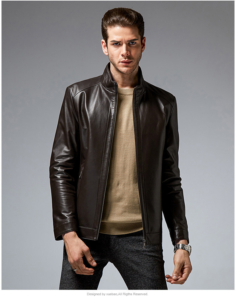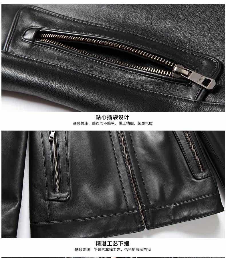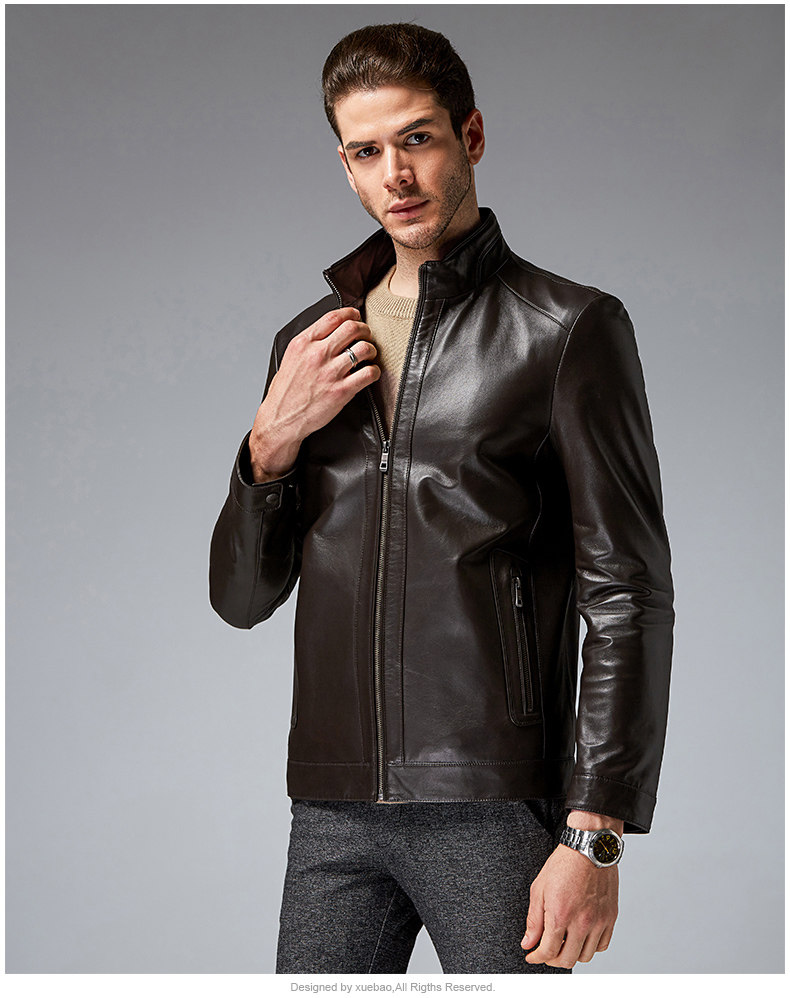 雪豹真皮西装男 绵羊皮修身男士外套 单皮皮衣 立领黑色6033