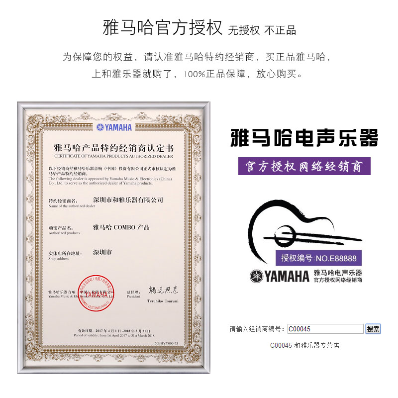 YAMAHA--雅马哈公司是在1887年成立,具有悠久历史的公司。雅马哈通过全世界范围的销售公司,在世界市场占有稳固的位置!相信品牌,拒绝忽悠!市场销售的吉他品牌有上百个,鱼目混珠,消费者对于繁杂混乱的市场导购感到无所适从,更造成选择性迷茫。雅马哈作为世界乐器综合销售量巨大品牌的强大体现是在每把冠以YAMAHA品牌的吉他在实际的声音、手感、信赖感和整体质量等方面的实力 。所有产品的设计、研发、生产、运输和服务,雅马哈都以高质量标准贯穿始终, YAMAHA始终站在行业的前沿。一把好吉他的标准应基于架构在音色、音准、手感、外观、品牌、价值、生活、健康等来诠释。好吉他既要有好的外观,更要有好的内质, 世界强大品牌的形成不是一天促成的,是在长期的世界范围内良好品牌经营,对品牌质量孜孜以求的结果,而使得生产出从专业到普通爱乐者都集体信赖的产品。