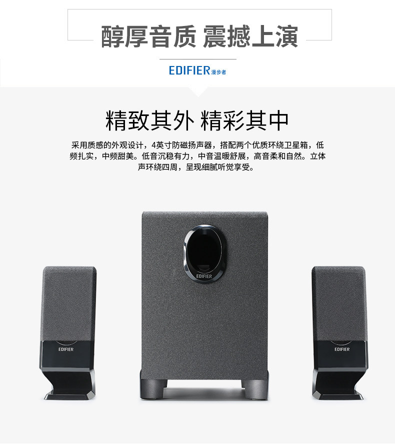 以下是Edifier/漫步者 R101T06笔记本电脑音响家用台式迷你小音箱重低音的详细说明,厂家介绍,求购联系信息,最终解释权归深圳市漫步者科技股份有限公司所有