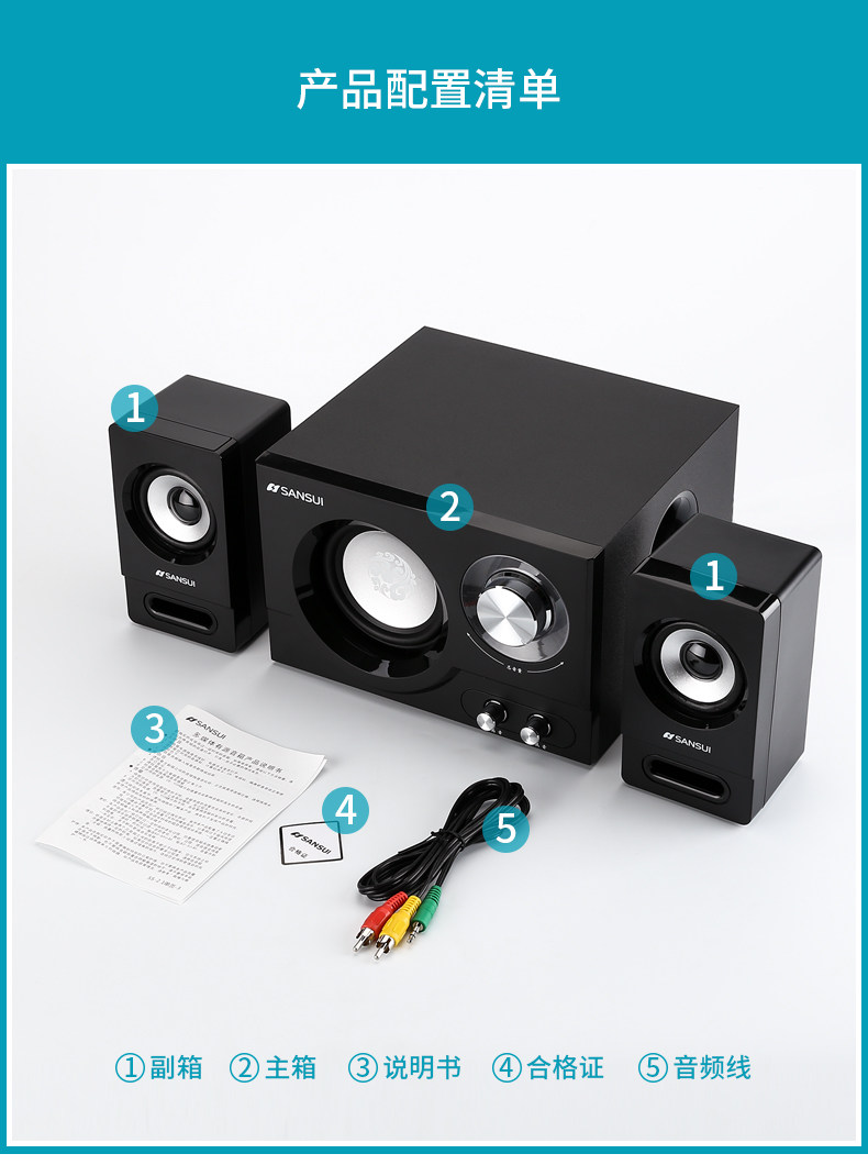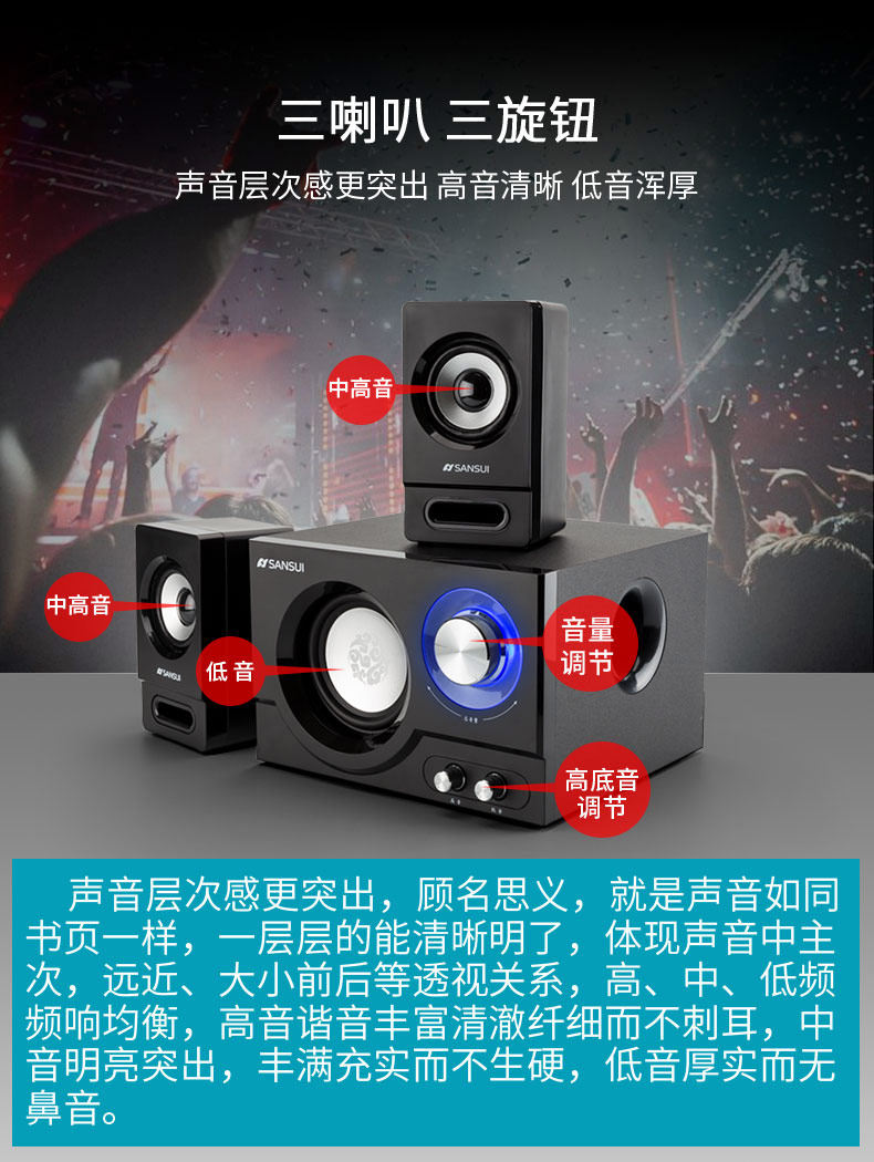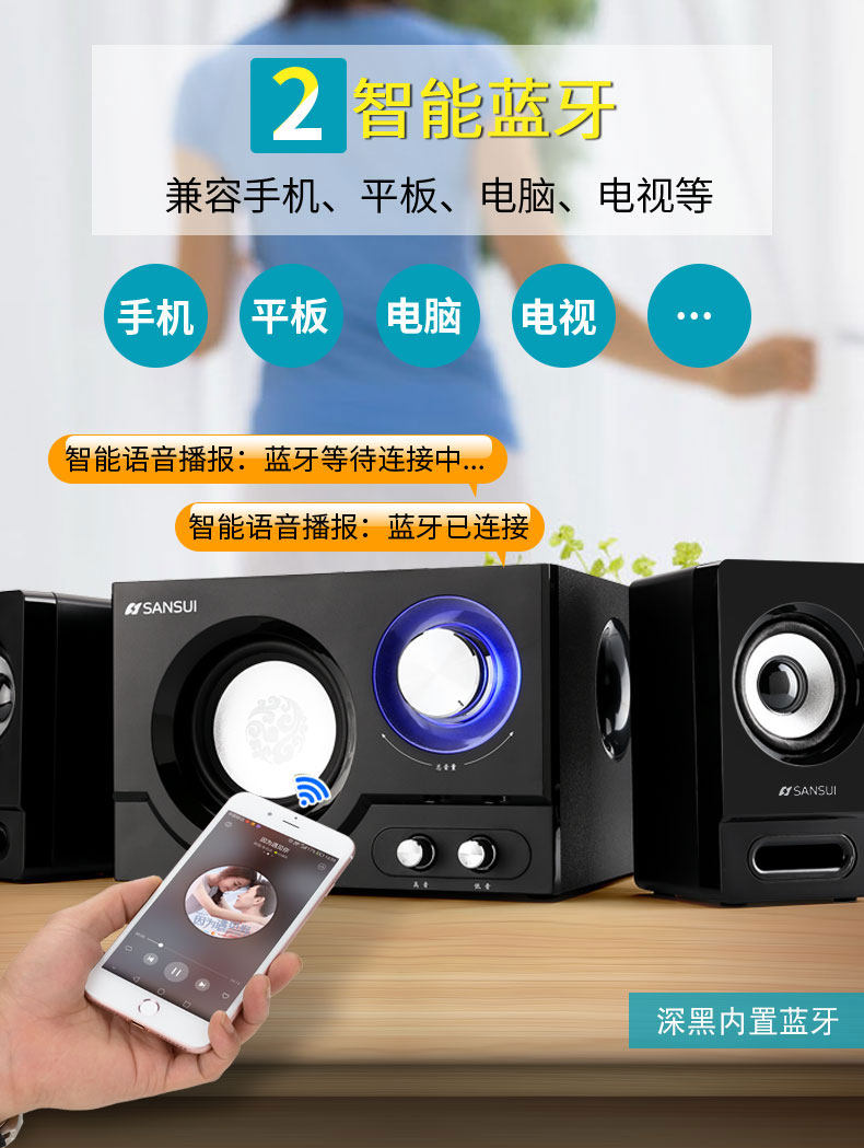 Sansui/山水 GS-6000(21A)家用蓝牙台式音响小电脑音箱超重低音炮