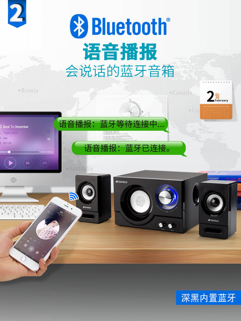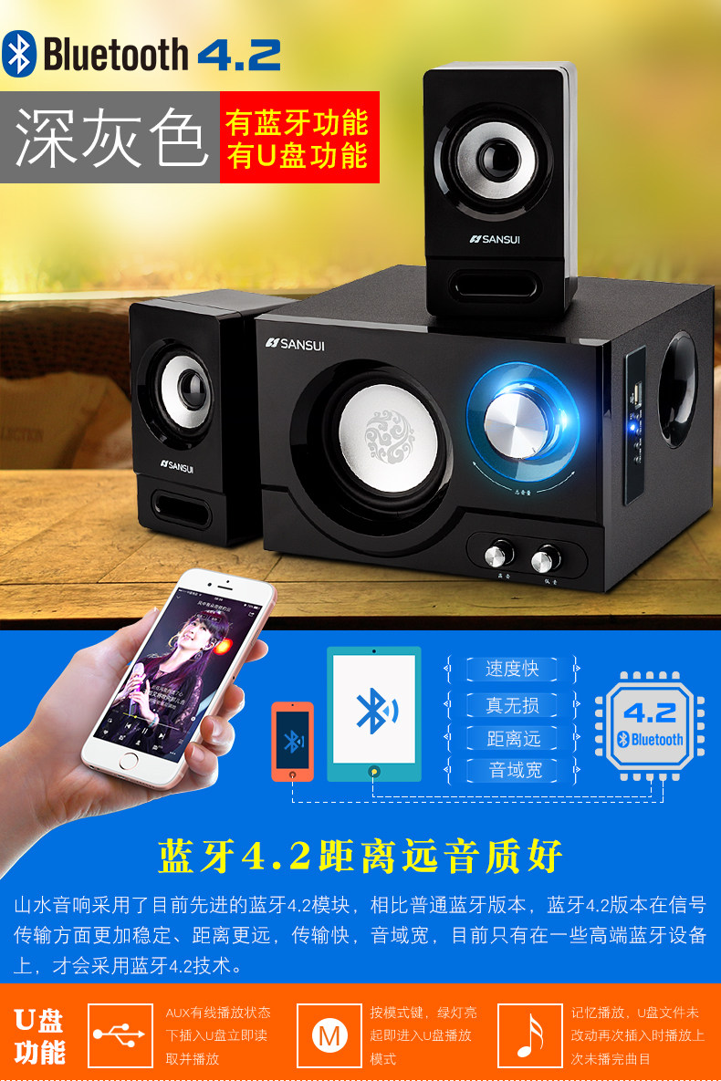 Sansui/山水 GS-6000(32B)U版电脑音响无线蓝牙音箱台式重低音炮