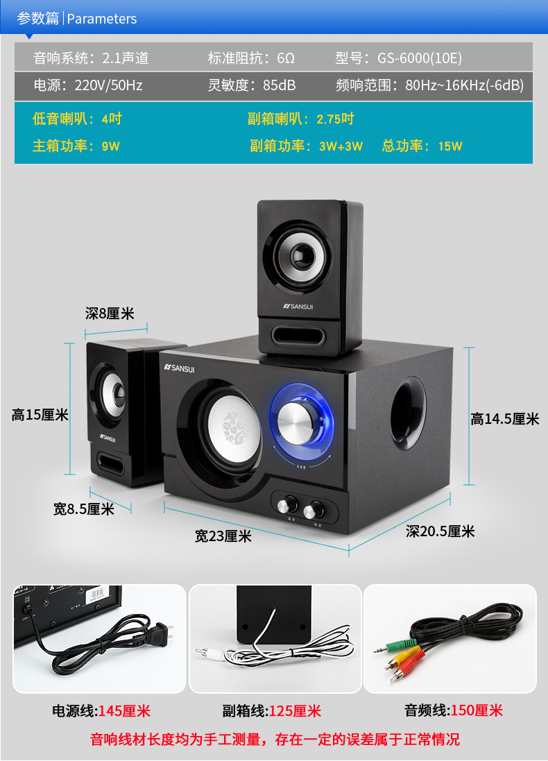 Sansui/山水 GS-6000(11D)蓝牙电脑音响台式小音箱插卡带低音炮