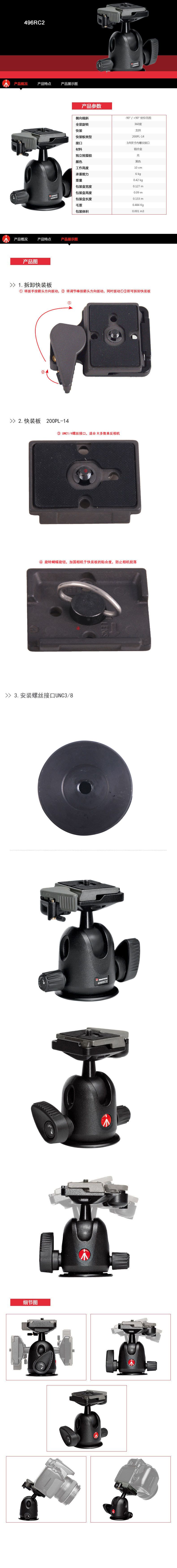 曼富图MKBFRC4-BH轻便微单三脚架单反便携云台套装碳纤维三角支架