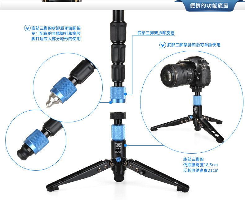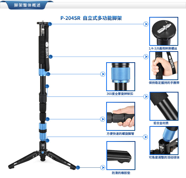 思锐C10S 球形云台 小型迷你微单单反相机三脚架 独脚架 3色可选