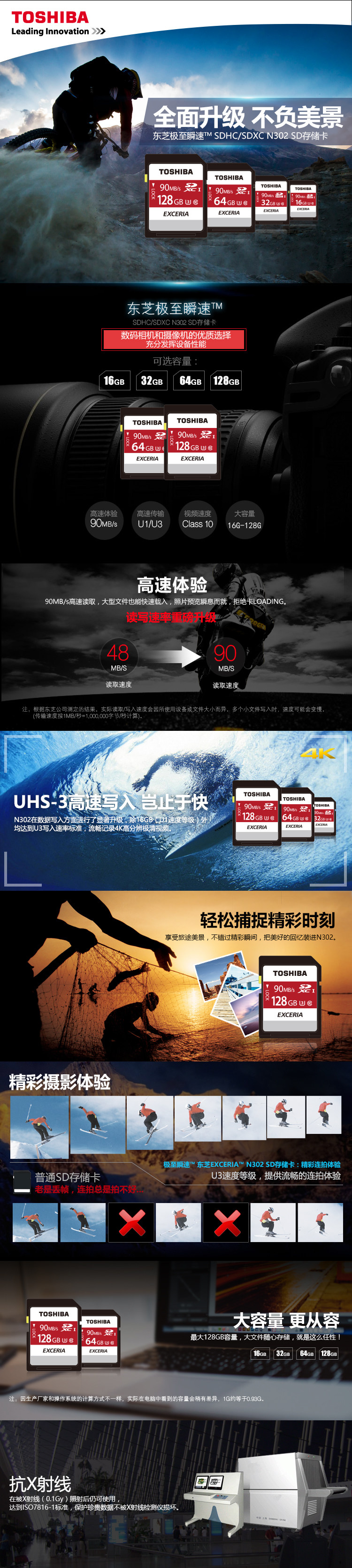 东芝SD卡64g相机内存卡大卡数码单反存储卡90M高速相机卡 支持4K