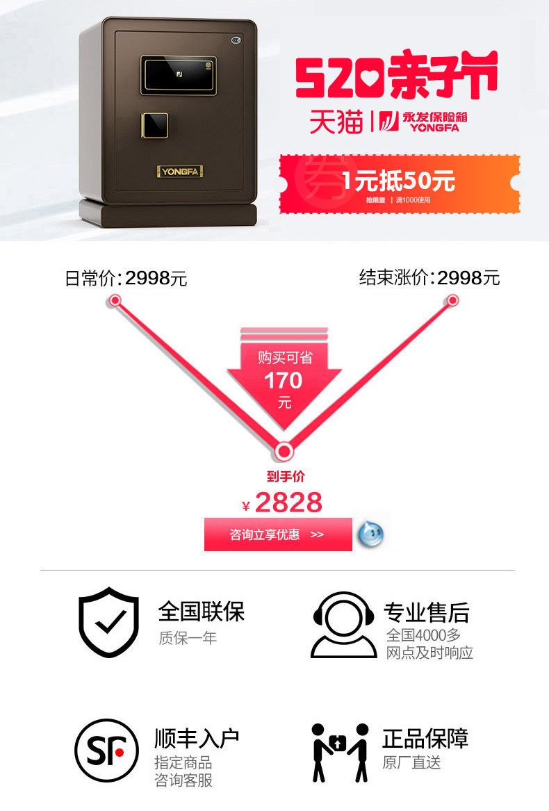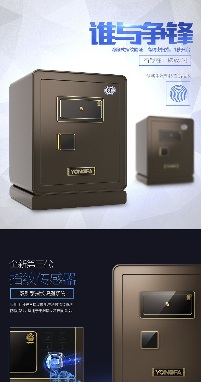 永发保险柜家用办公3c认证50cm高大型防盗全钢密码床头保险箱特价