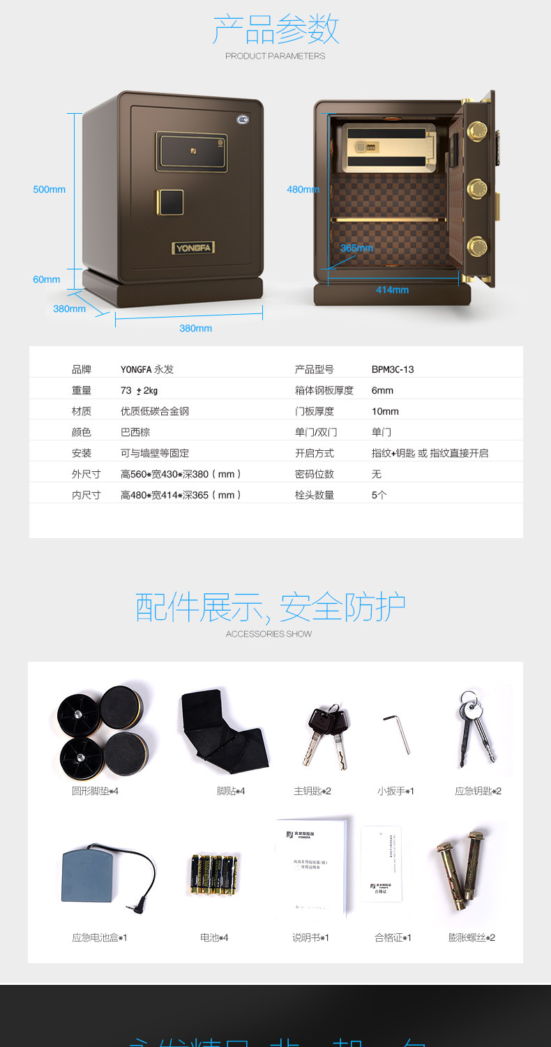 永发保险柜家用70cm高电子保险箱办公密码小型入墙防盗保险柜全钢