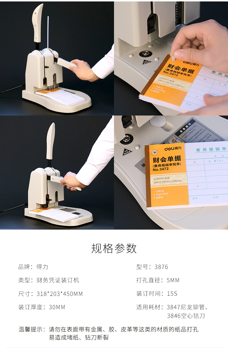 得力财务凭证装订机3881会计手动打孔自动切割铆管打孔机 包邮