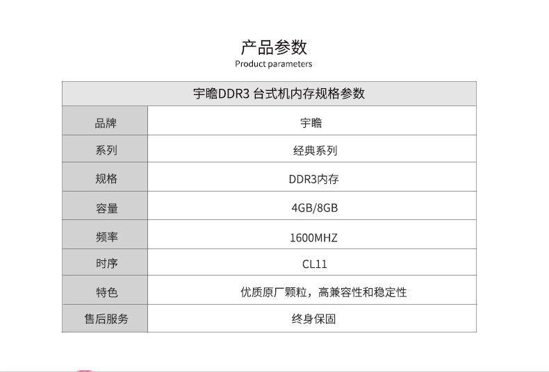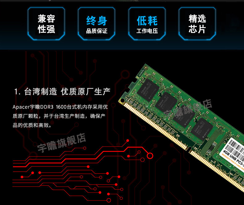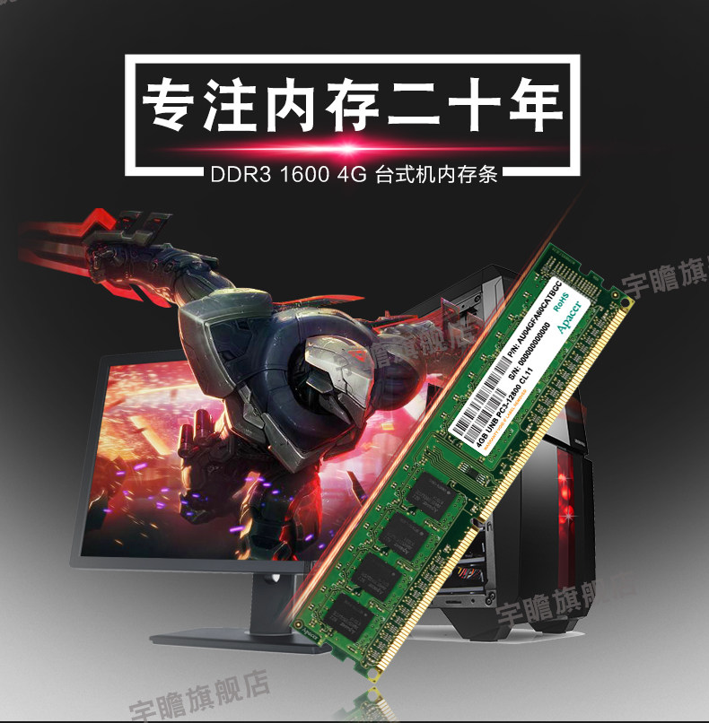 宇瞻内存条8g DDR3 1600 1866 2400三代台式机电脑内存条兼容1333