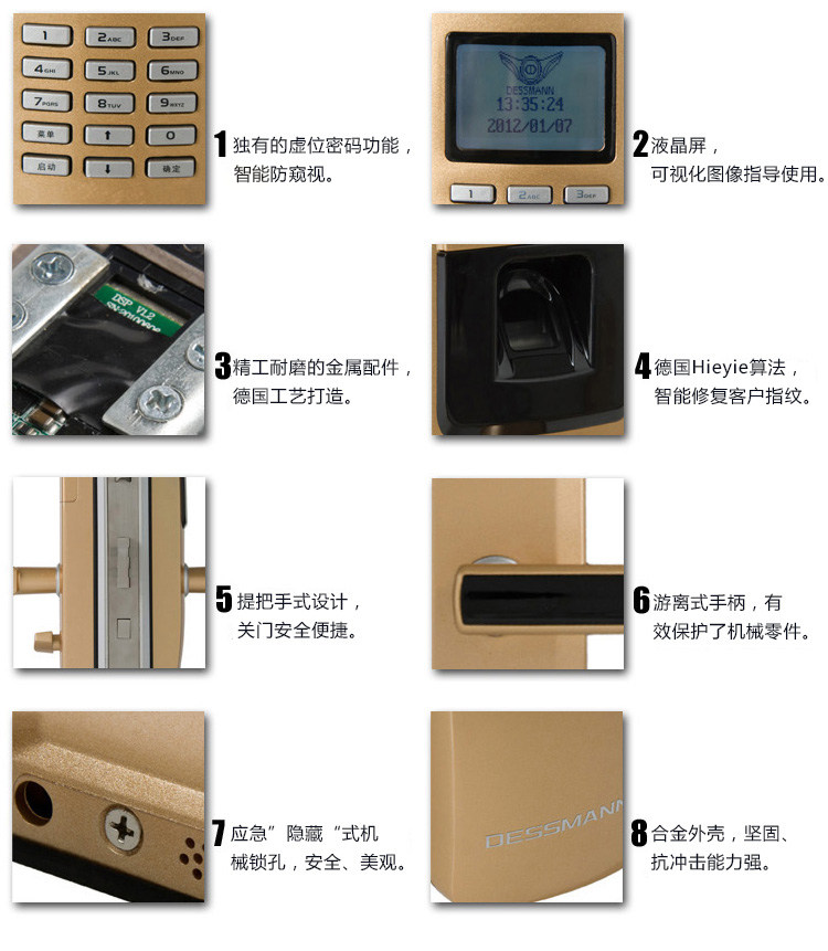 德施曼家用防盗锁密码门锁指纹锁 防盗门智能电子密码指纹锁G800