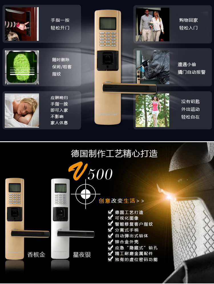 德施曼防盗家用锁智能指纹锁 防盗门电子锁密码锁智能锁S510假锁