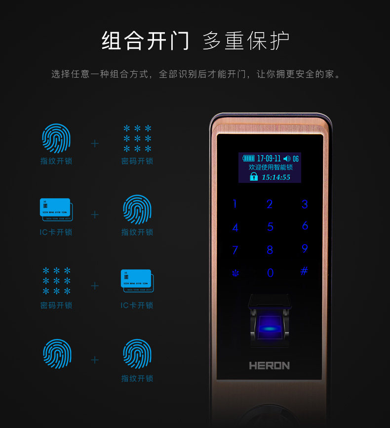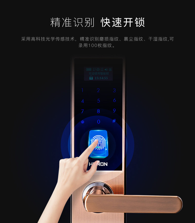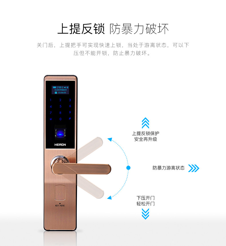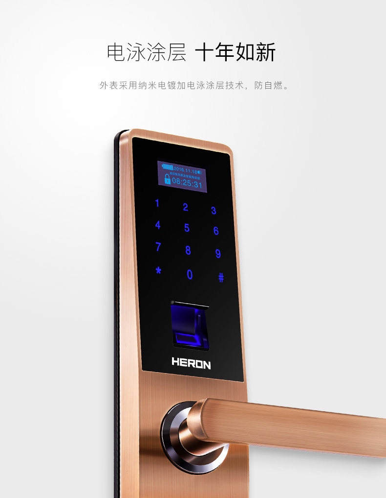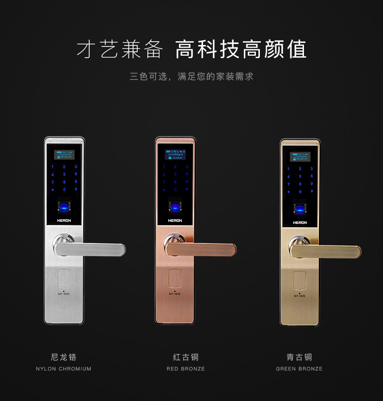 HERON黑龙智能指纹锁A603系列 家用电子锁密码锁 木门防盗门锁