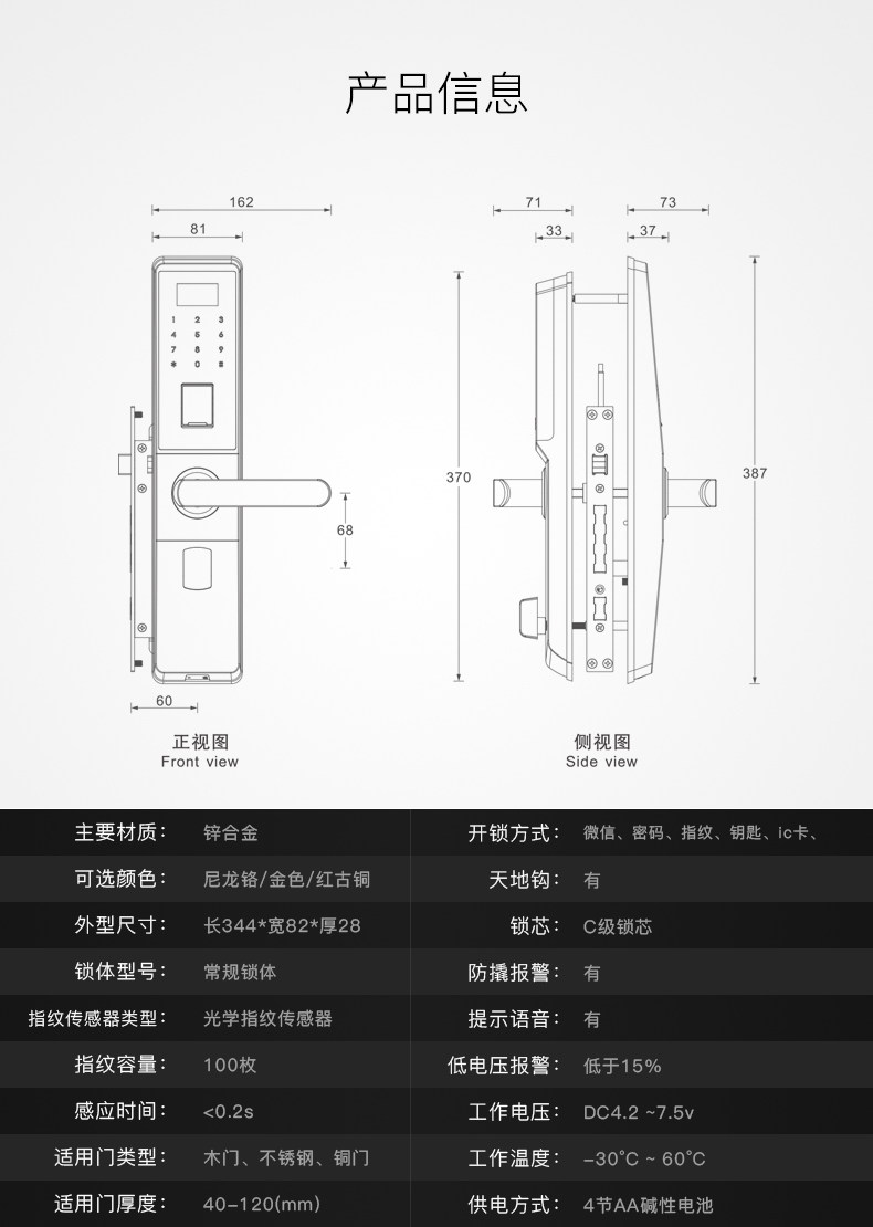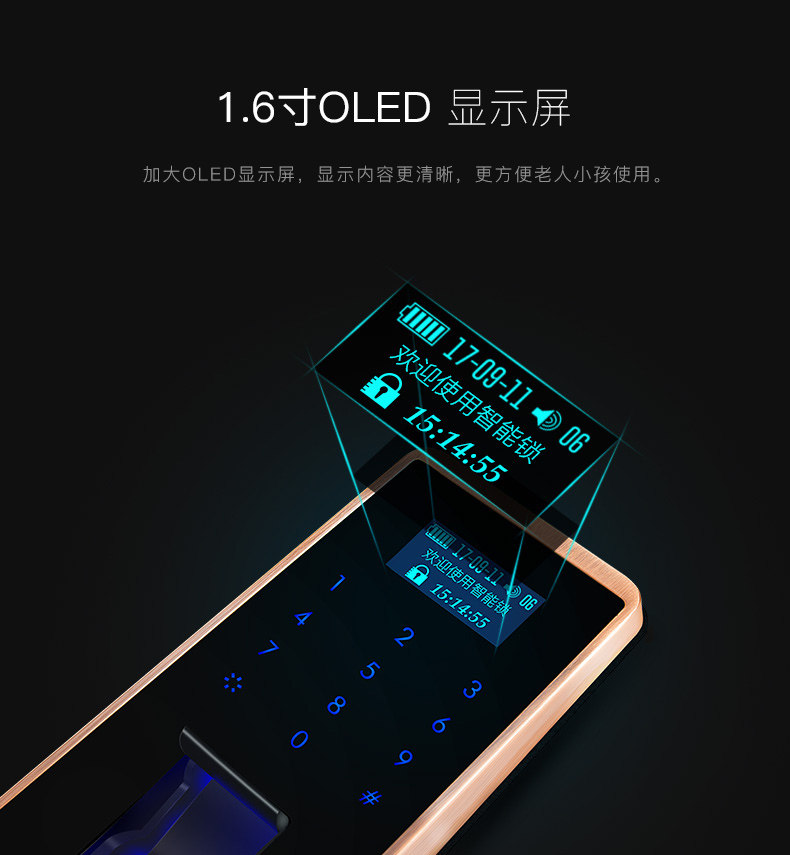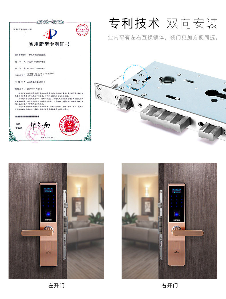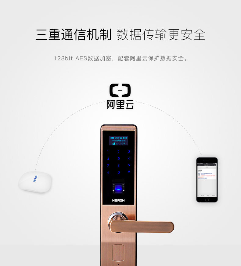HERON黑龙微信指纹锁 智能家用电子锁 木门防盗门密码锁A6012