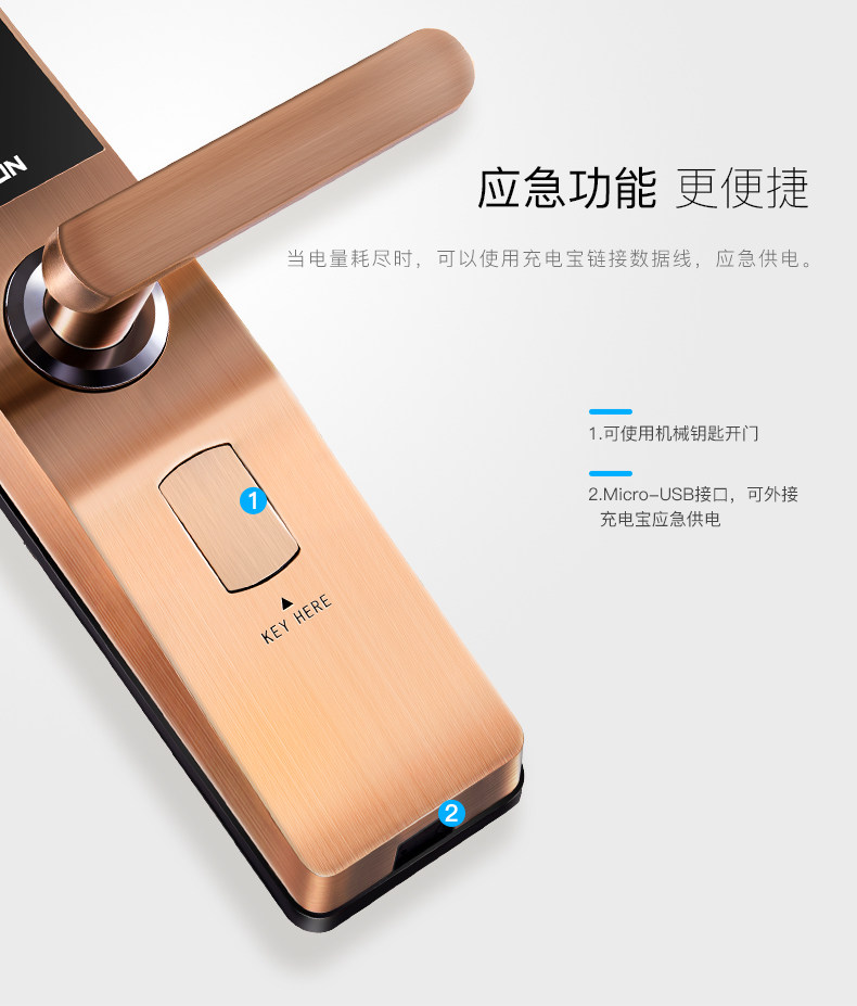 HERON黑龙智能指纹锁A802 别墅家用木门防盗门适用 电子锁密码锁