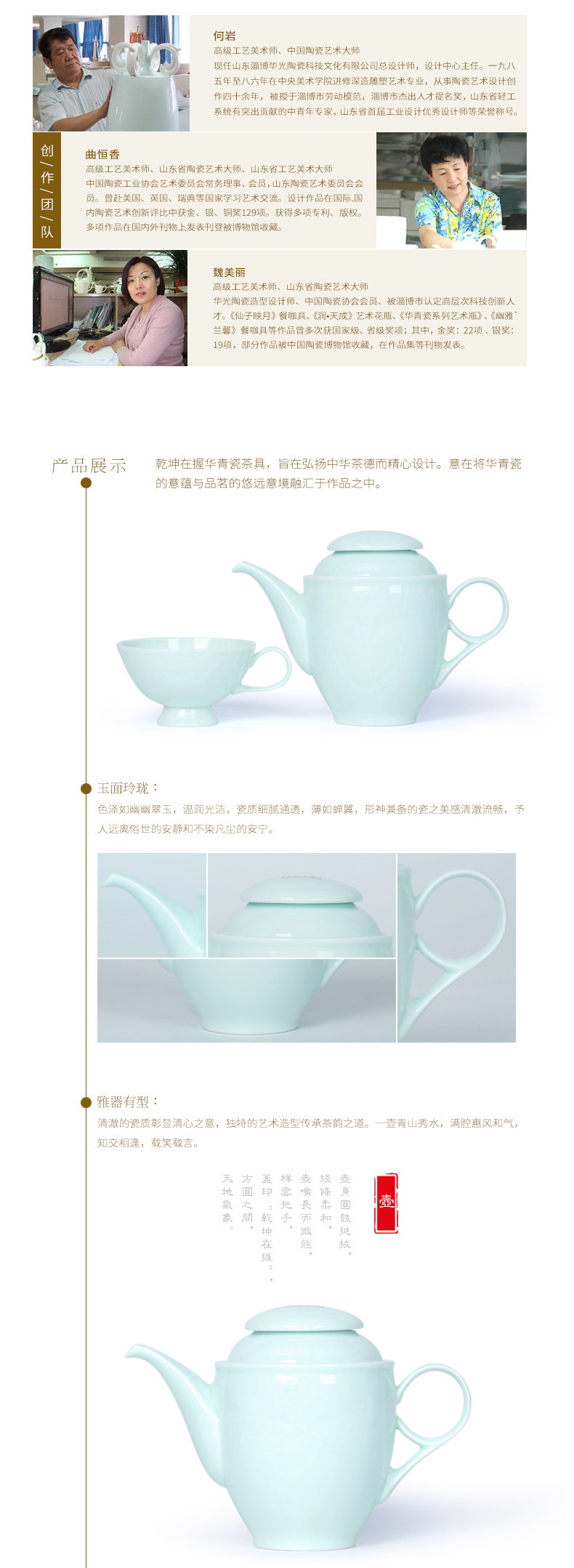 以下是华光陶瓷 华青瓷 乾坤在握 茶具套装组合 青瓷茶具的详细说明,厂家介绍,求购联系信息,最终解释权归淄博华光陶瓷科技文化有限公司所有