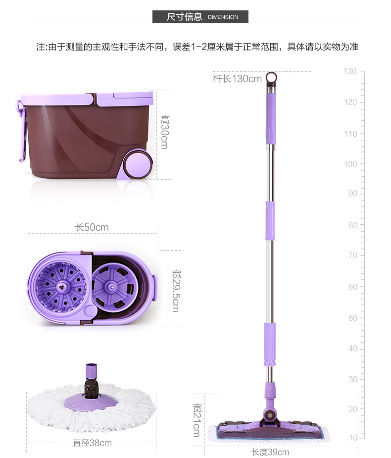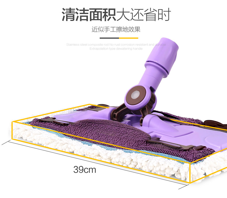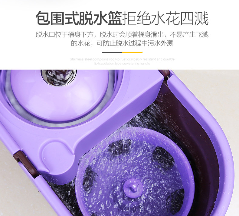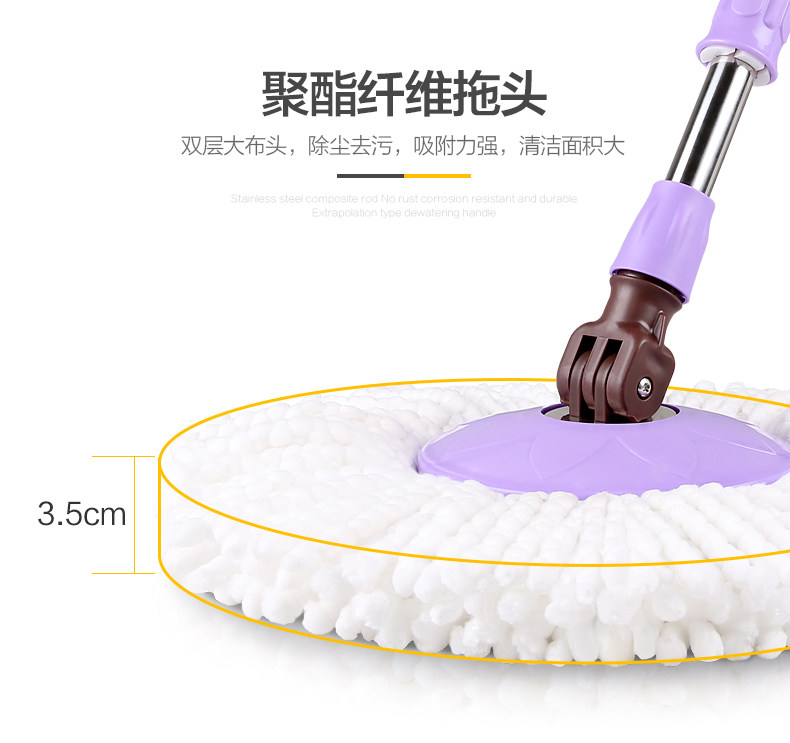 美丽雅旋转拖把配件不锈钢手压式旋转桶拖布桶通用拖把杆赠拖把头