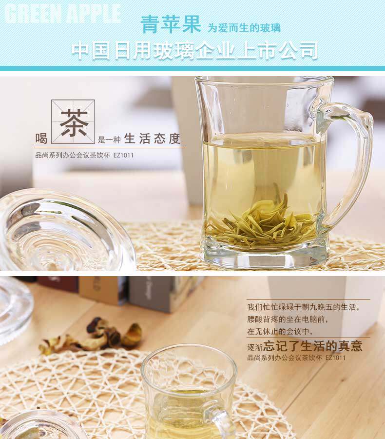 青苹果 办公会议茶饮杯透明带盖带把创意玻璃杯花茶杯水杯