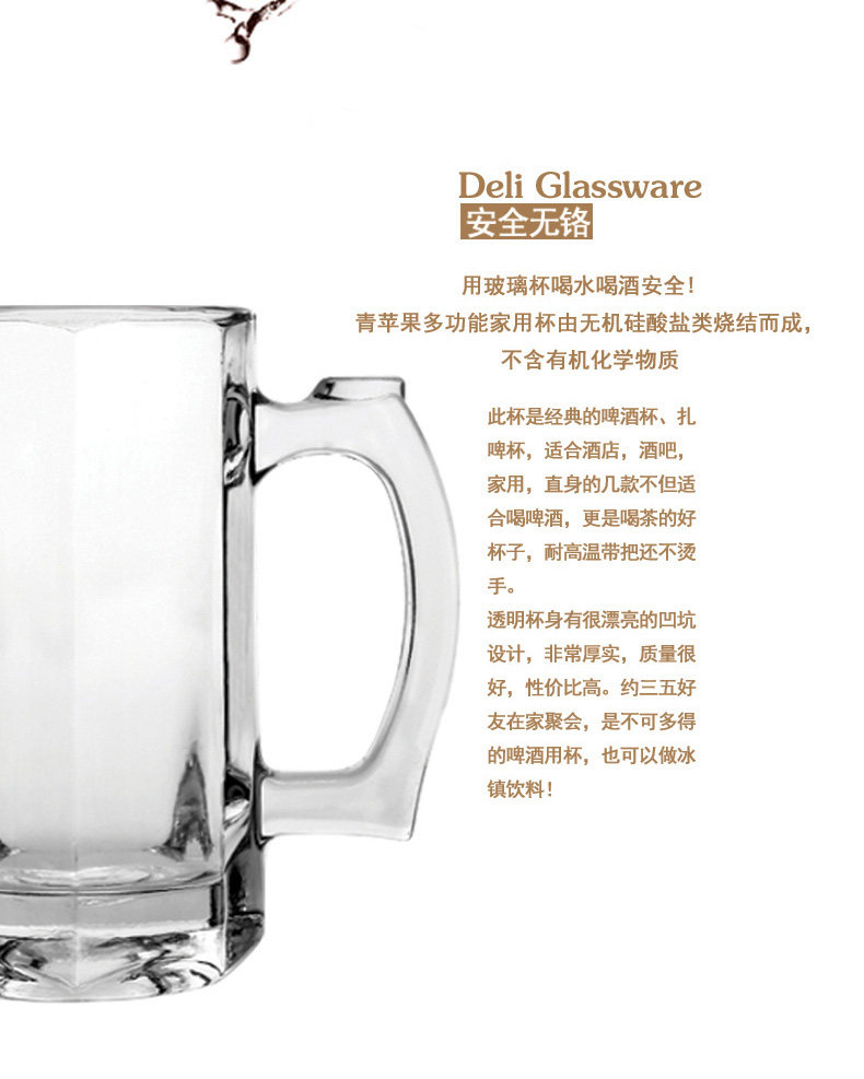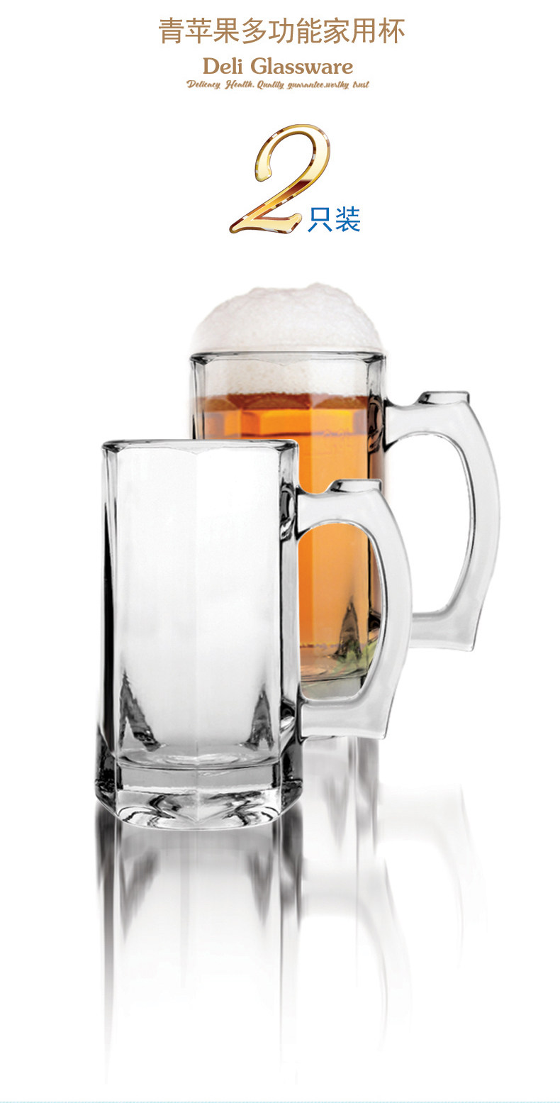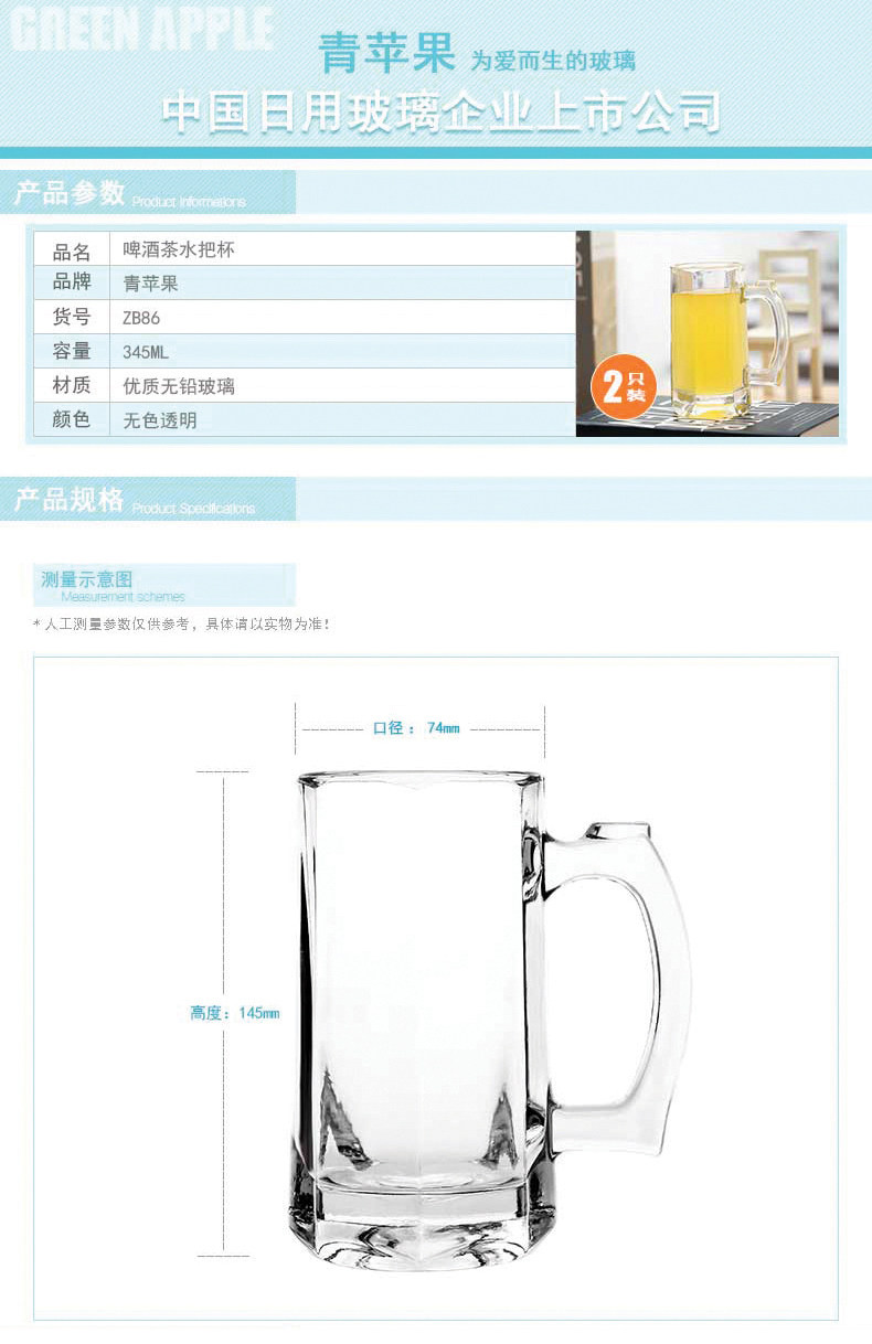 青苹果 加厚啤酒杯玻璃大容量带把个性水杯把杯家用杯正品2只装