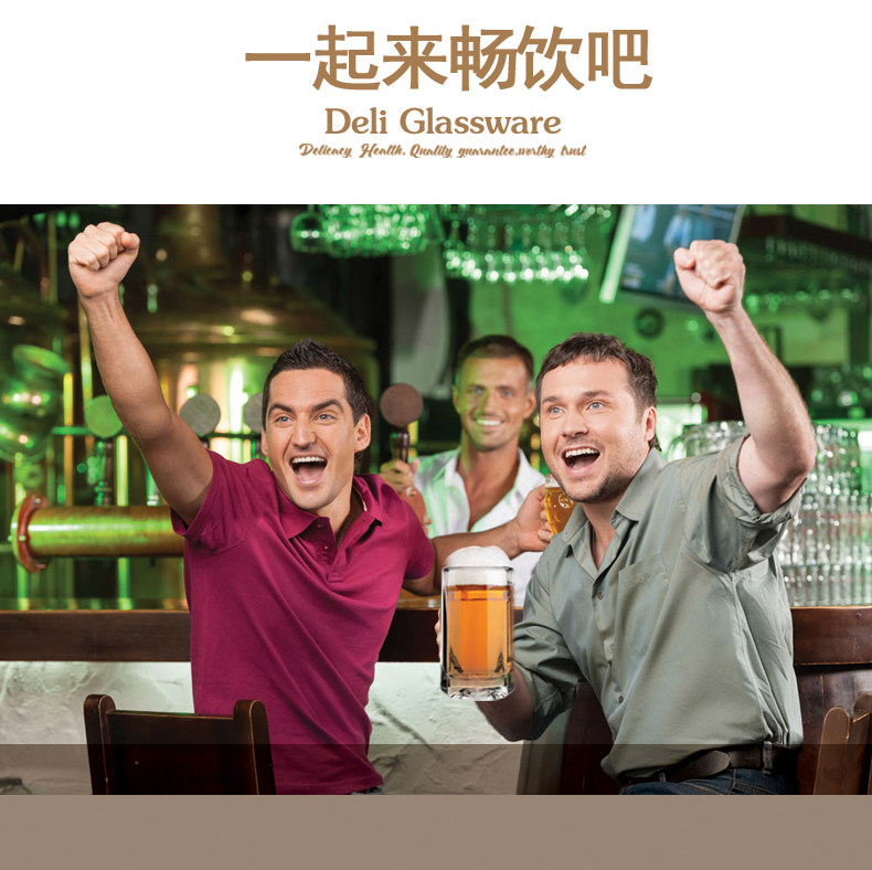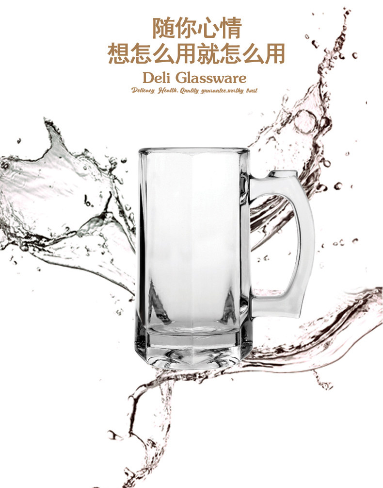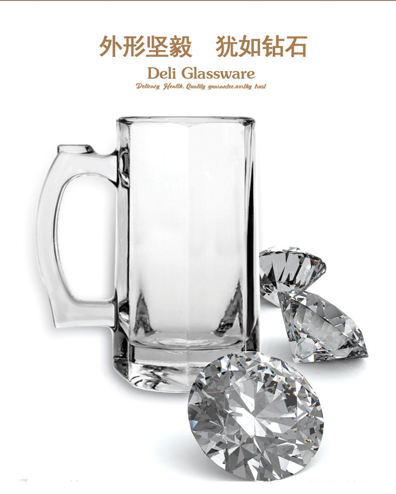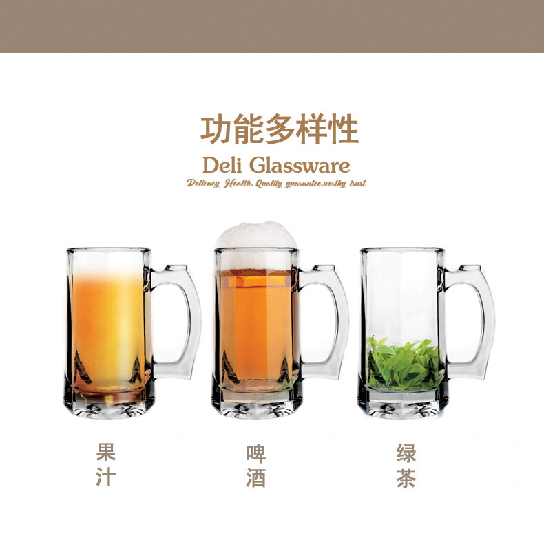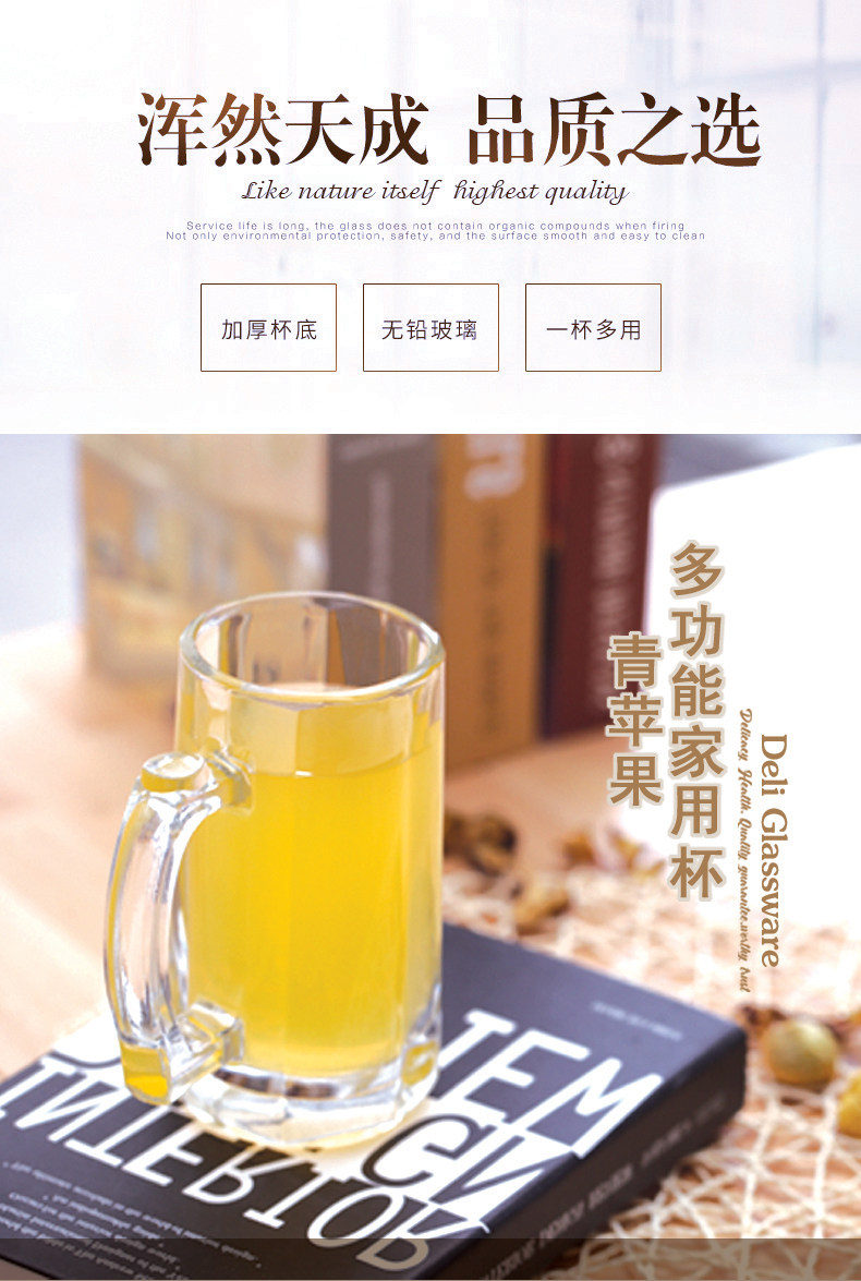 青苹果 加厚啤酒杯玻璃大容量带把个性水杯把杯家用杯正品2只装