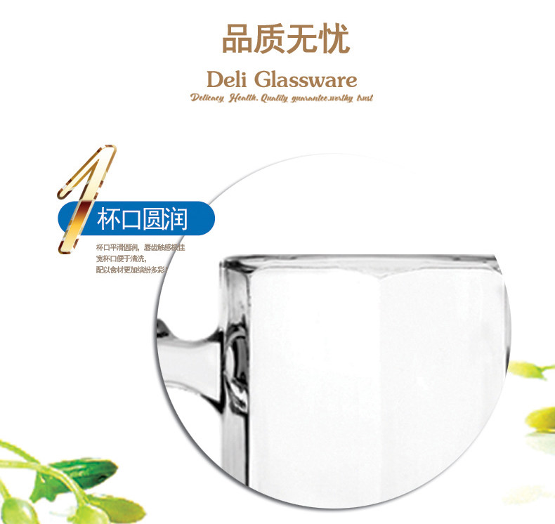 青苹果透明玻璃直升杯家用水杯果汁杯饮水杯喝水泡茶杯240ml6只装
