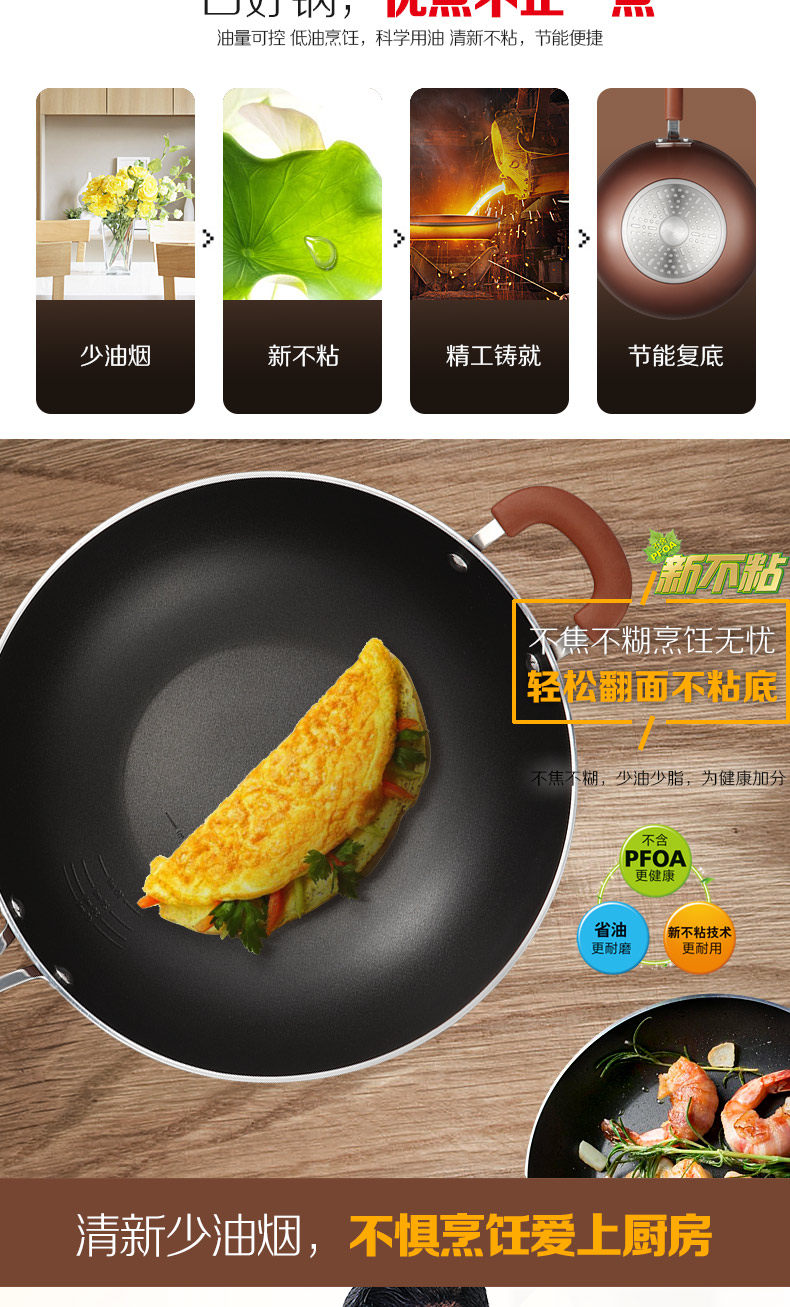 爱仕达32cm锈不了炒菜炒锅耐用旋风无涂层精铁锅燃气电磁炉通用