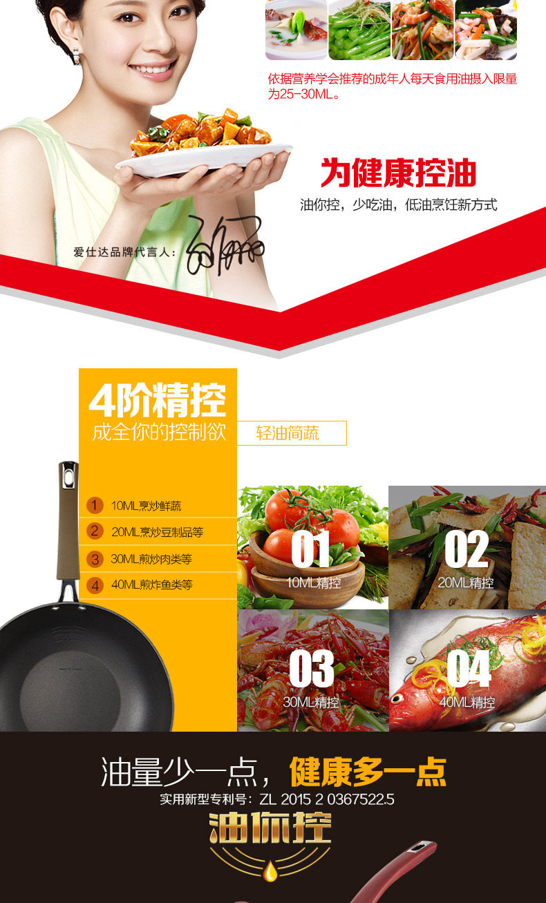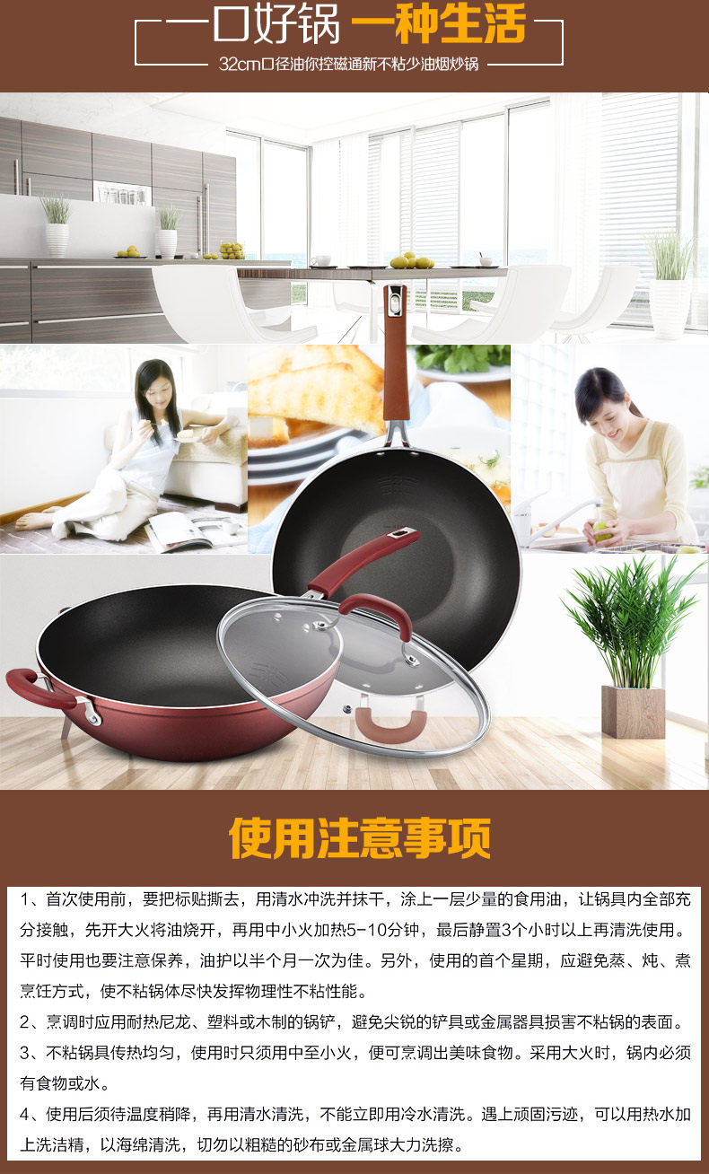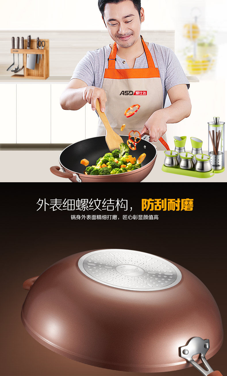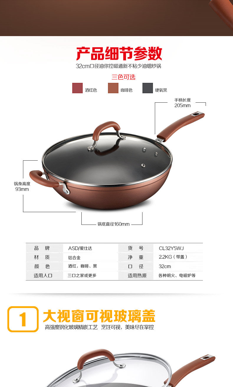 ASD/爱仕达32cm三层不锈钢少油烟健康炒锅炒菜锅欧式外型TV1332