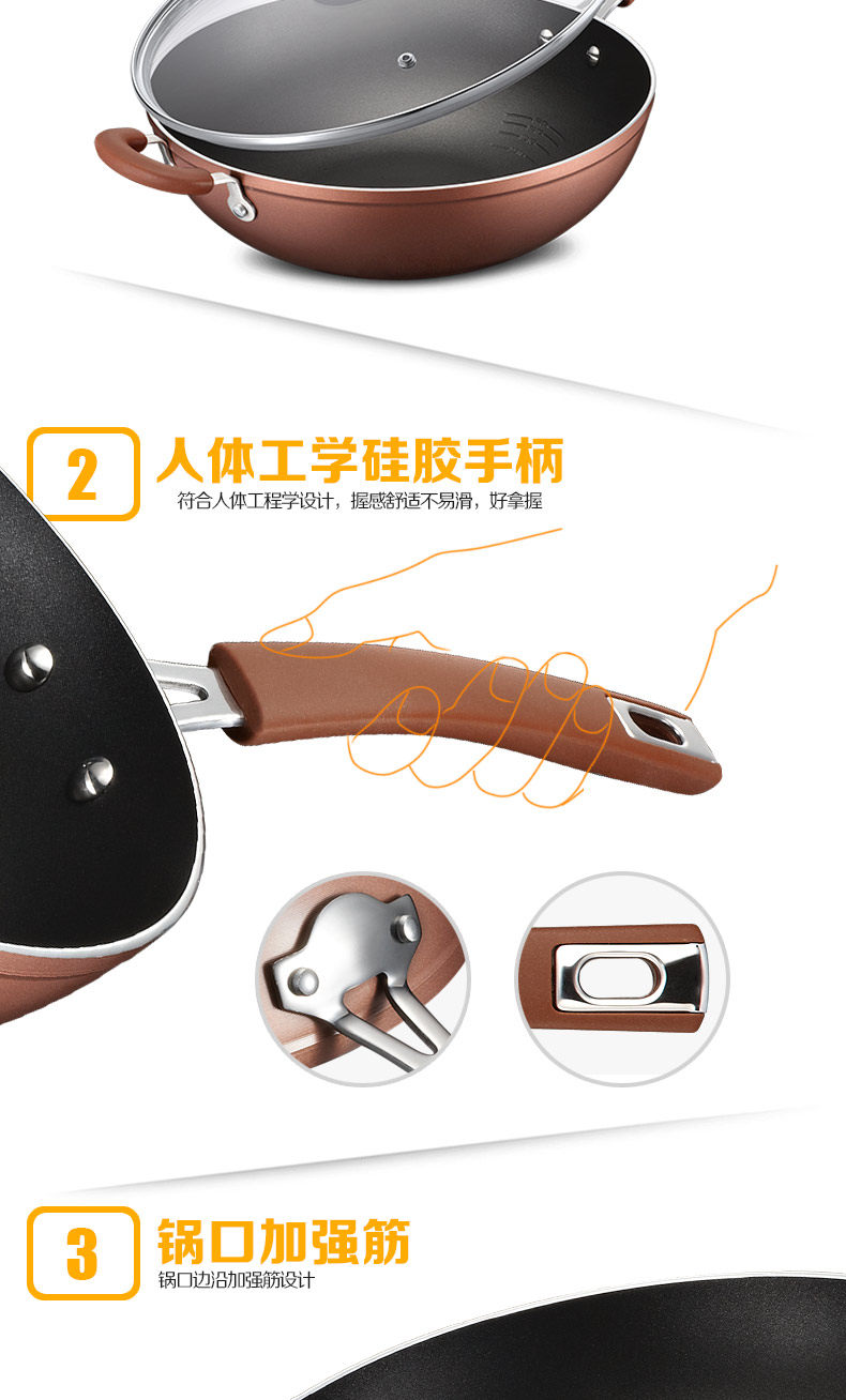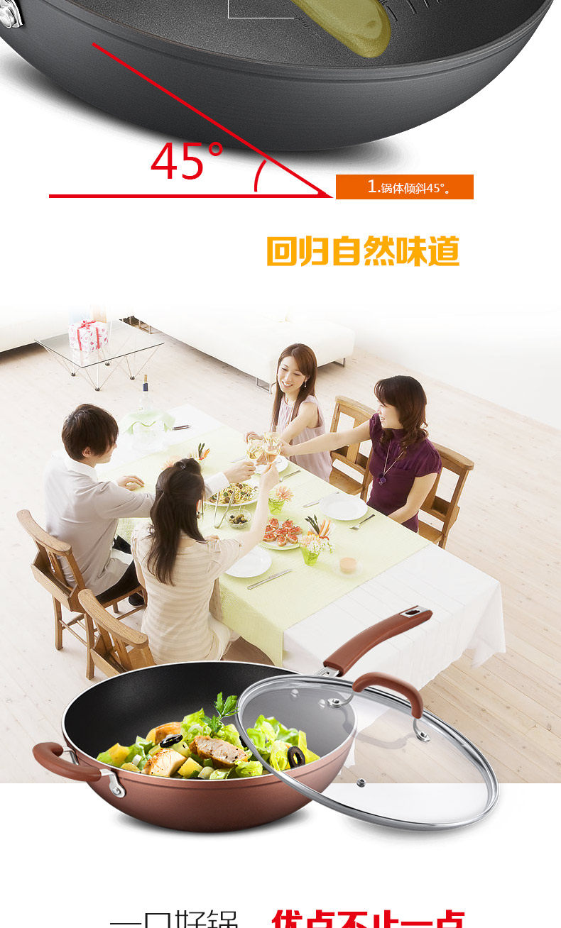 爱仕达钛熔射32cm金刚旋风炒锅不粘锅少油烟炒菜锅具CL32Z2WG