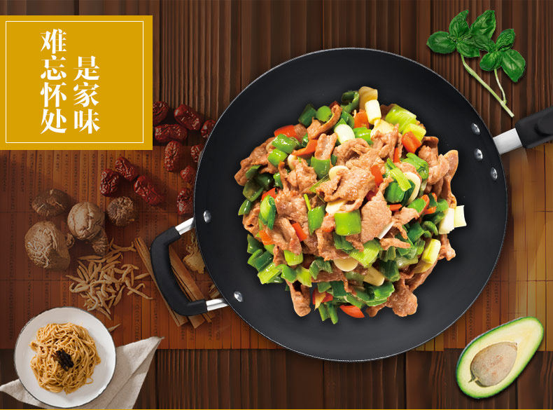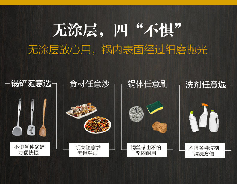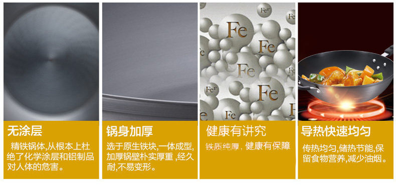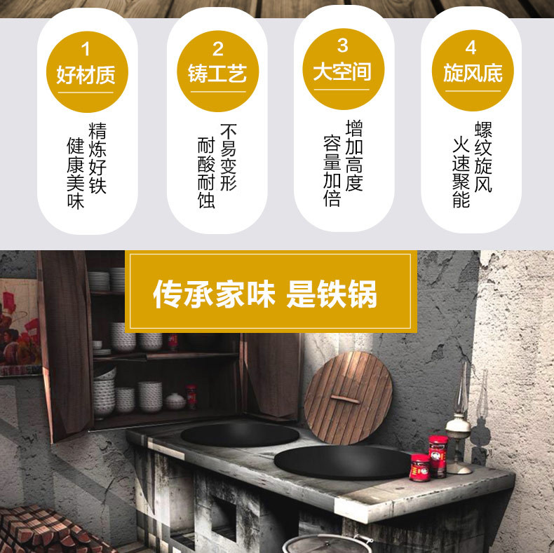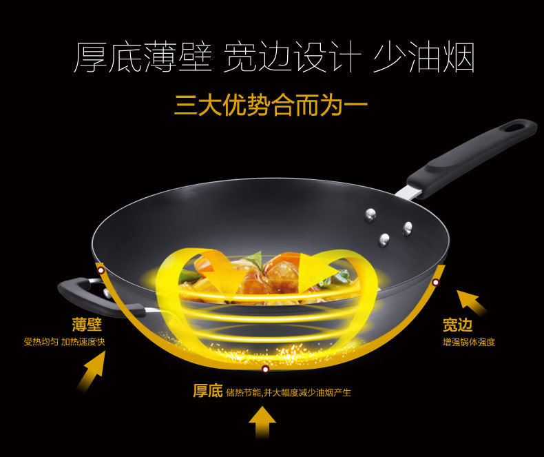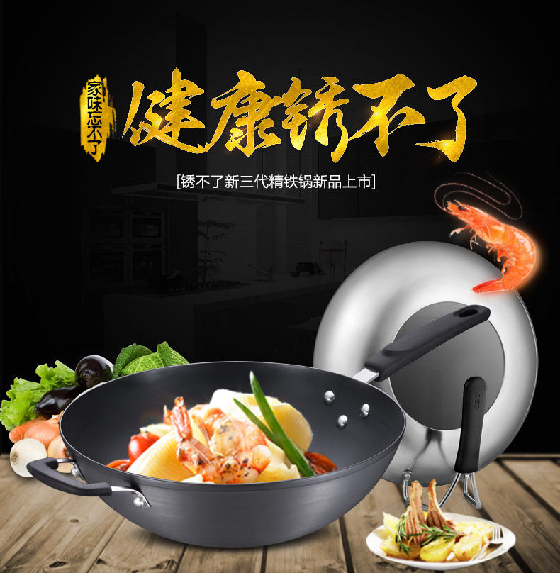 爱仕达32cm锈不了炒菜炒锅耐用旋风无涂层精铁锅燃气电磁炉通用