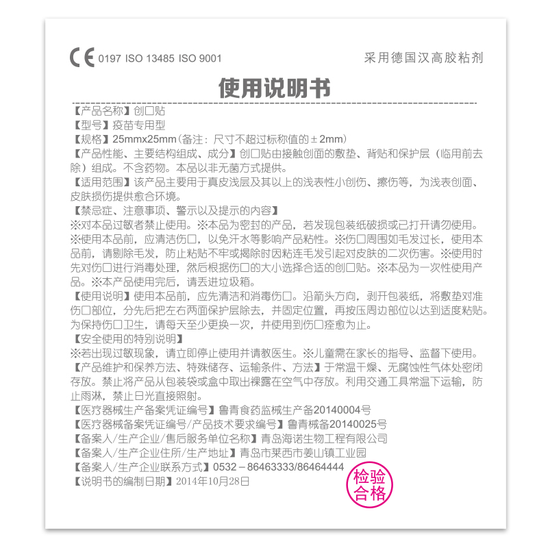 海氏海诺无菌敷贴医用大号一次性自粘接触性创面伤口敷料贴创可贴