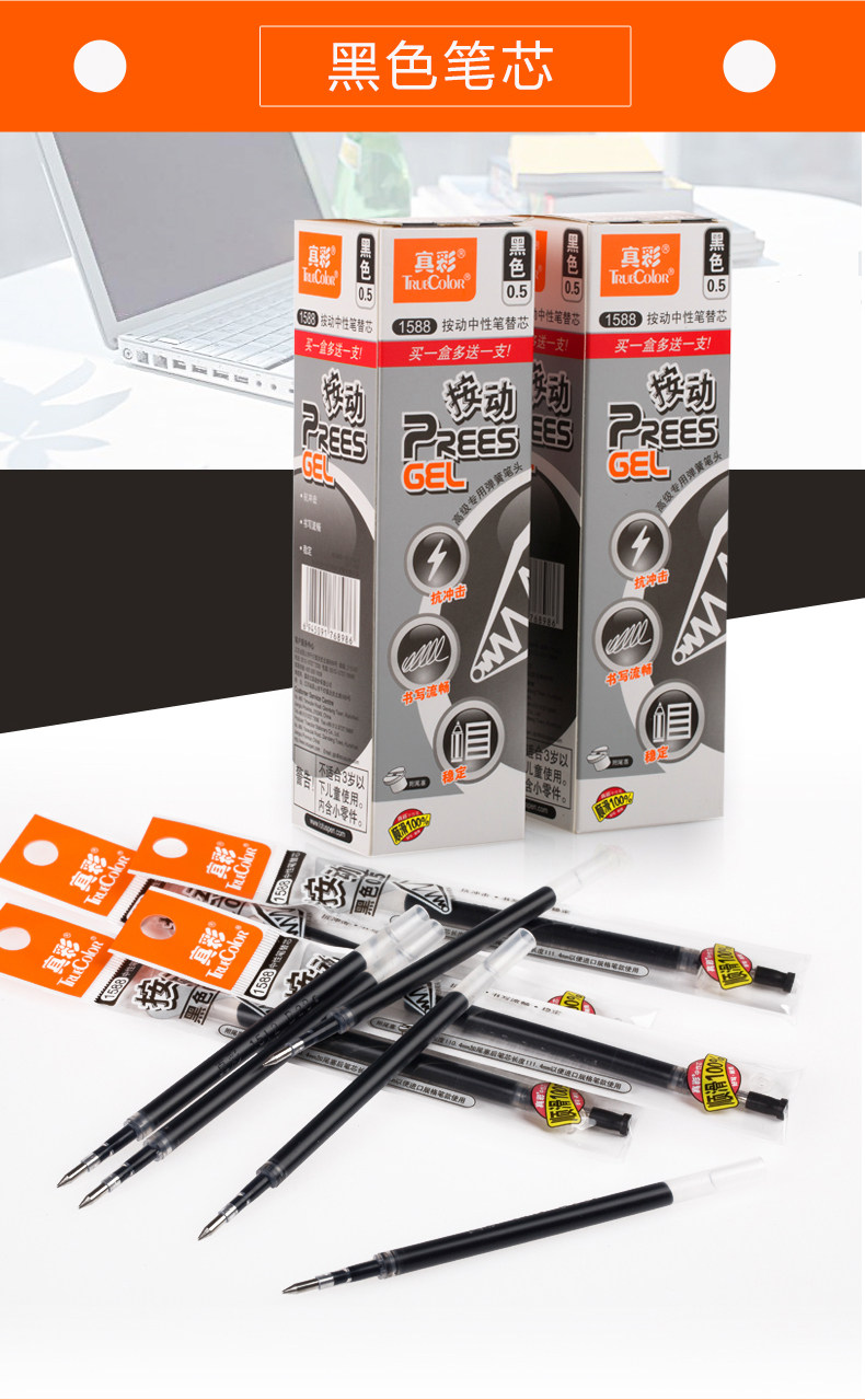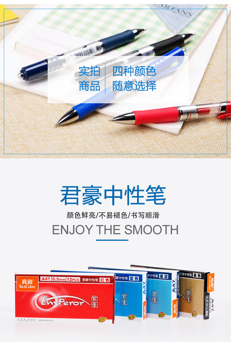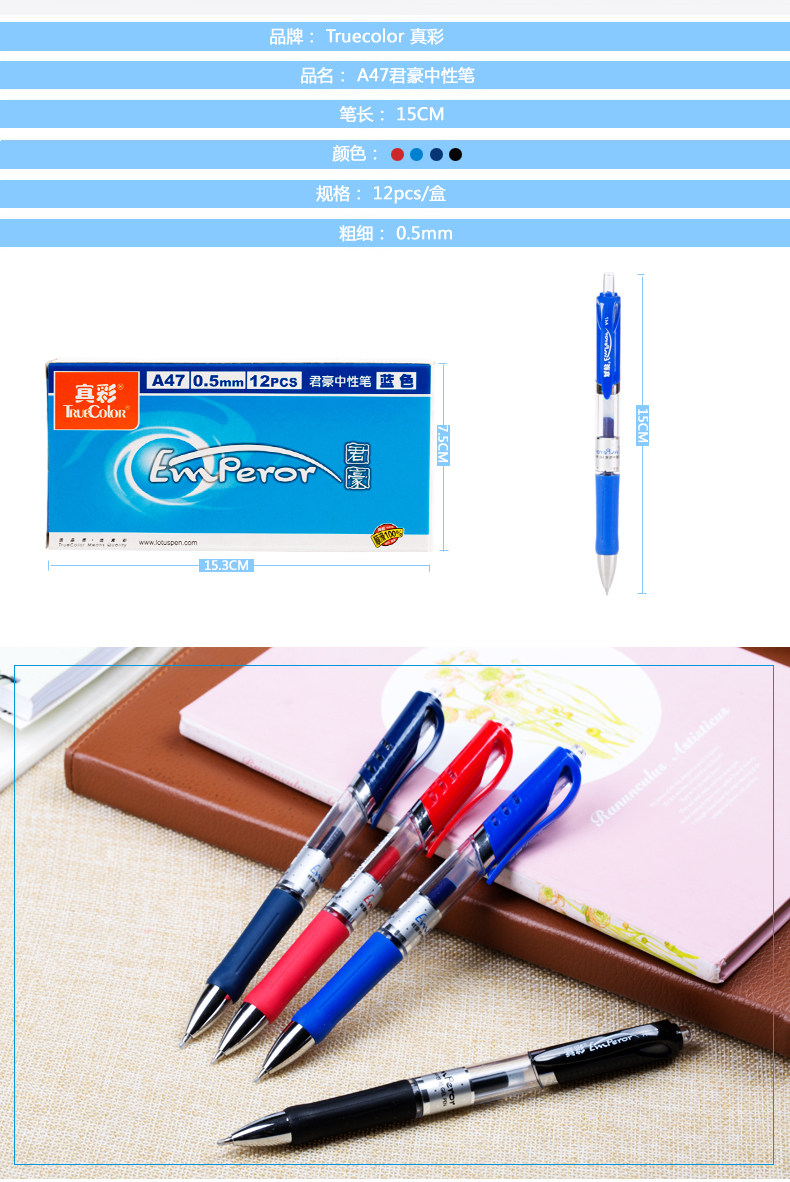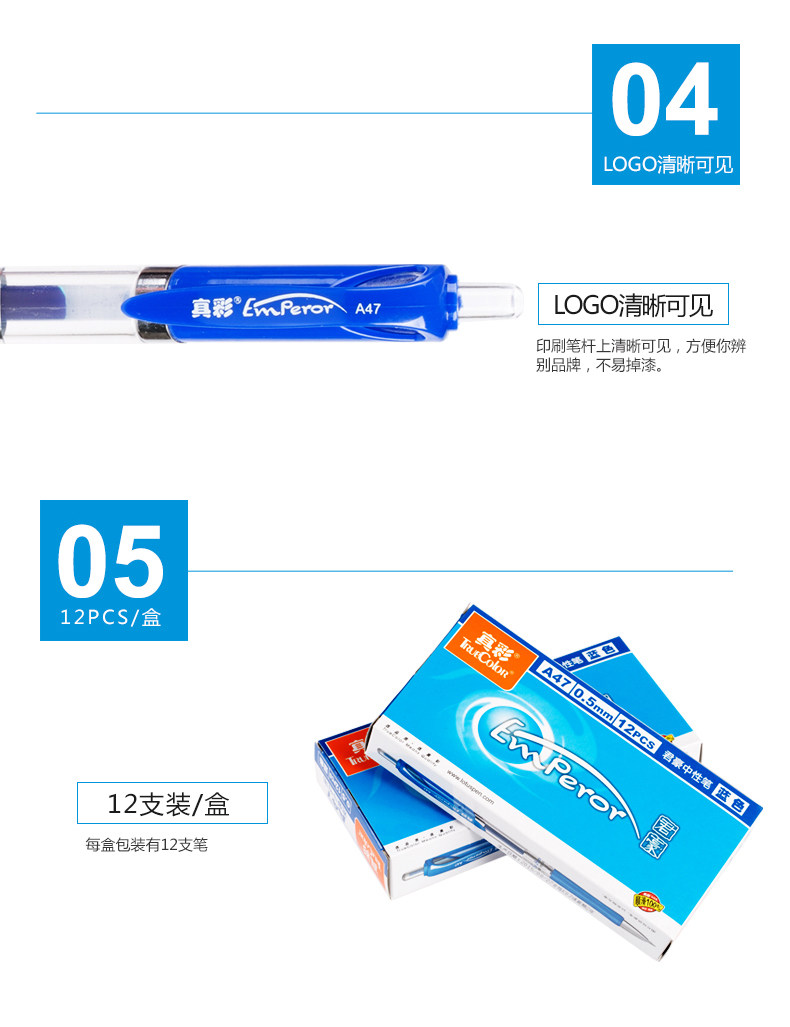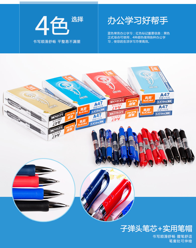 以下是真彩按动水笔A47中性笔0.5mm按动中性笔黑 水笔 签字笔12支的详细说明,厂家介绍,求购联系信息,最终解释权归真彩文具股份有限公司所有