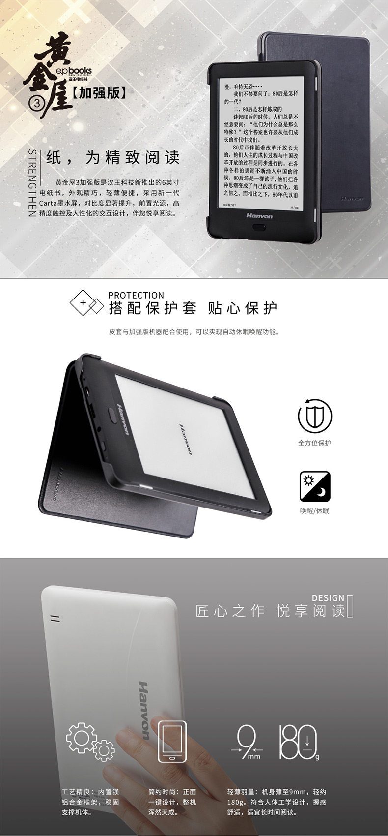 汉王电纸书黄金屋3经典版F6c背光电子书阅读器墨水屏安卓版触摸屏